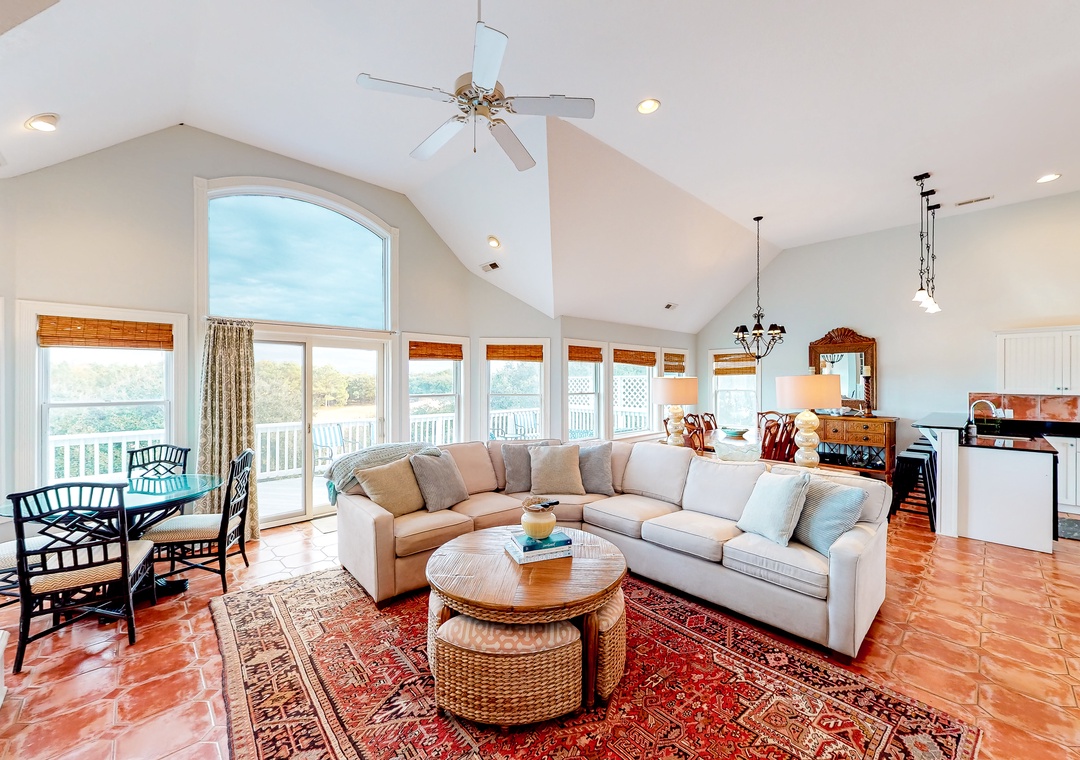 What a beautiful Corolla Getaway you have stumbled upon! When it comes to family vacations or golf getaways with all of your closest friends, there will be no better place to call home than Cavituck Club Charm. Boasting an expansive three-story layout, seven bedrooms, a balcony, and a furnished deck, you and yours will have no trouble spreading out and finding endless ways to use each dreamy vacation day. The Currituck Club is very close, and the house sits right on the course.