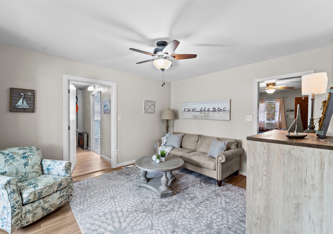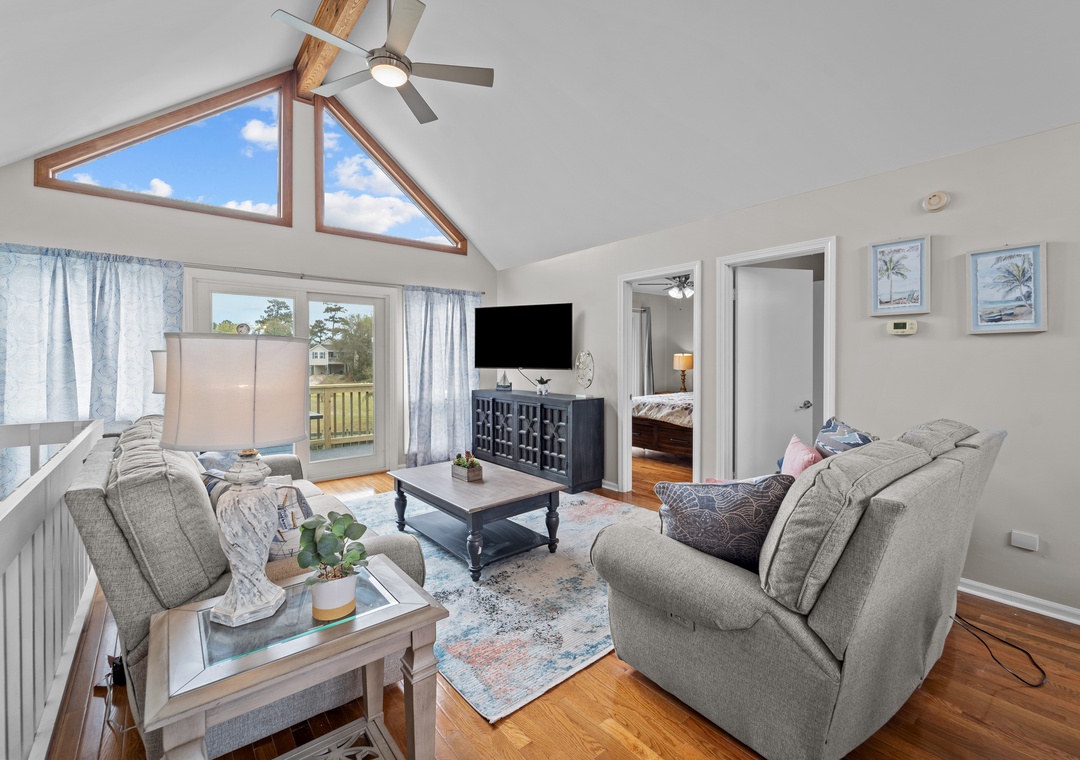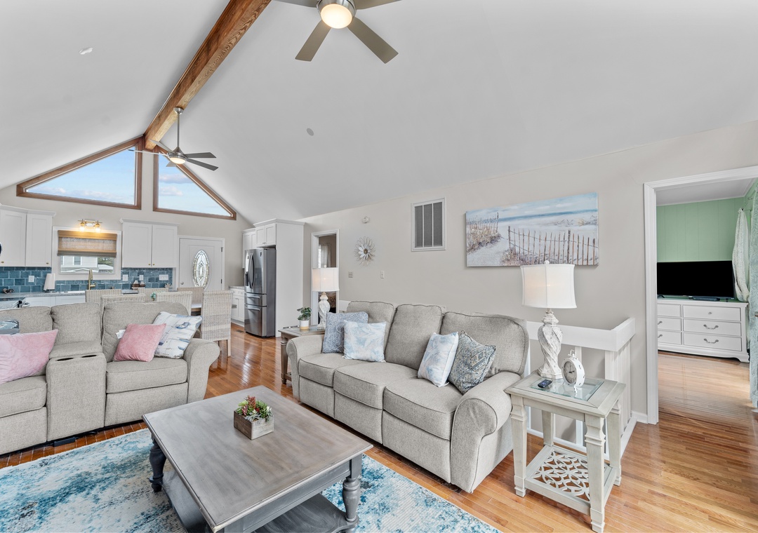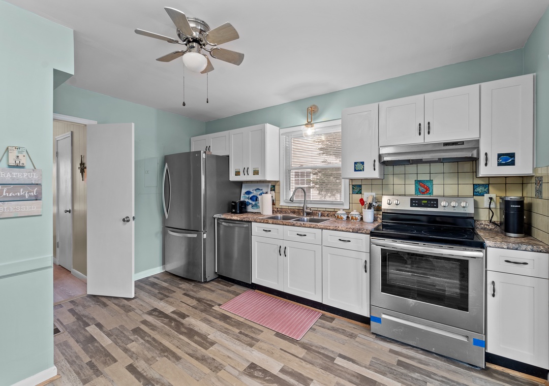 We loved Sandy Eagle because of the comfort and space it offered. Our family of 8 was able to spread out and have plenty of personal space in the six bedrooms and yet congregate easily in the main living room and all sit around the table to eat together. We loved the crazy comfortable mattresses (obviously quite new), bluetooth speakers in the bathrooms and enclosed porch with gliders to sit and watch the canal. Having two kitchens (one for each level) was a bonus, it's easy to fill one fridge quickly when you have 8 people. We also had fun with the mini-pool table and the foosball table. Overall the kitchen was pretty well stocked, but if you do "scratch cooking' you should know that while there are plenty of plates, glasses and silverware as well as all the standard small appliances (blender, large, oval slow cooker, toaster, Keurig) there are no mixing bowls or serving pieces. We got creative a few times, not worth giving only 4 stars, but good to know if you are a cook. We go to the Outer Banks frequently and will give Sandy Eagle a look to see if it's available for our next visit.- Reviewed On: 3/27/2024