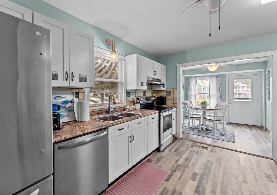 All-new interior home comfort and waterfront living are yours at this renovated, canal-front retreat. Part of the Colington Harbour Community, this inviting escape includes access to a sound-side beach, a picnic area, and a community pool. You can also launch one of the home's four provided kayaks right from the backyard dock to explore the waters around the neighborhood. After your tour, spread out around the large, partially fenced lawn or fire up the private gas grill for a family barbecue on the deck. A gas firepit sets the scene for outdoor entertainment under the stars. Ocean-side beaches, local dining options, and the Wright Brothers National Memorial are four miles away.