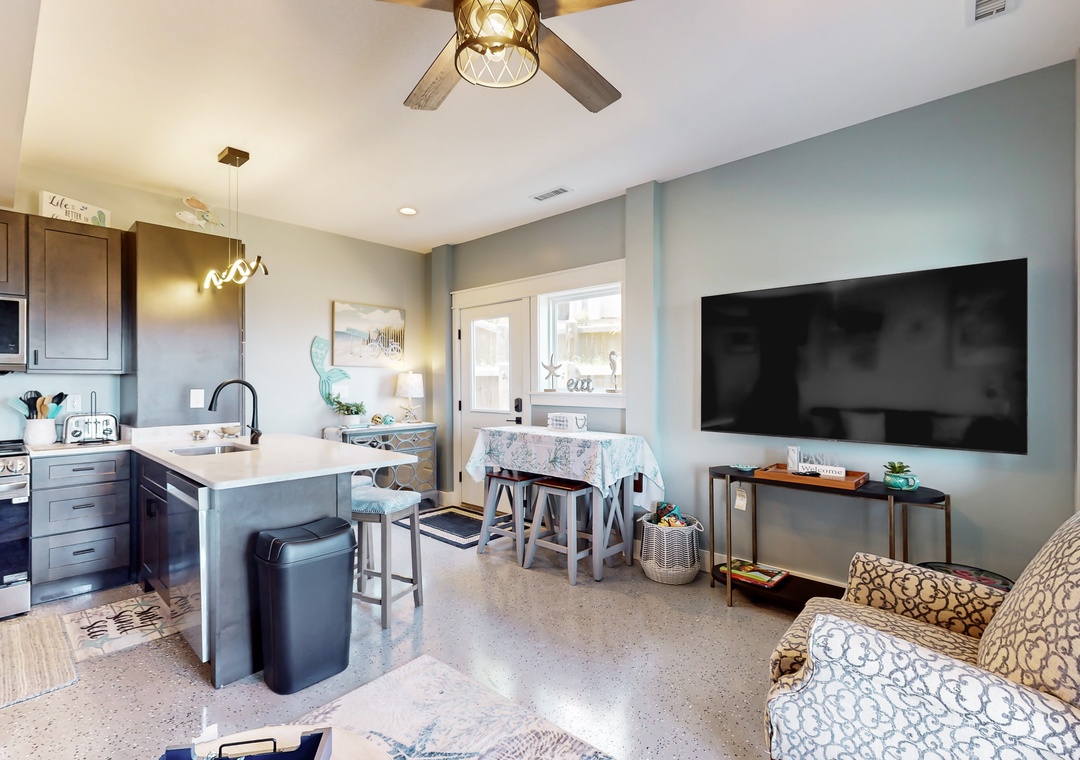 This charming apartment features all the amenities you need for a comfortable stay, including a sofa bed, washer/dryer, central air-conditioning, WiFi, and a full kitchen with a fridge, stove, oven, and dishwasher. Cozy up in the living room with a TV, or head outside to soak up the sun and enjoy the bay view.