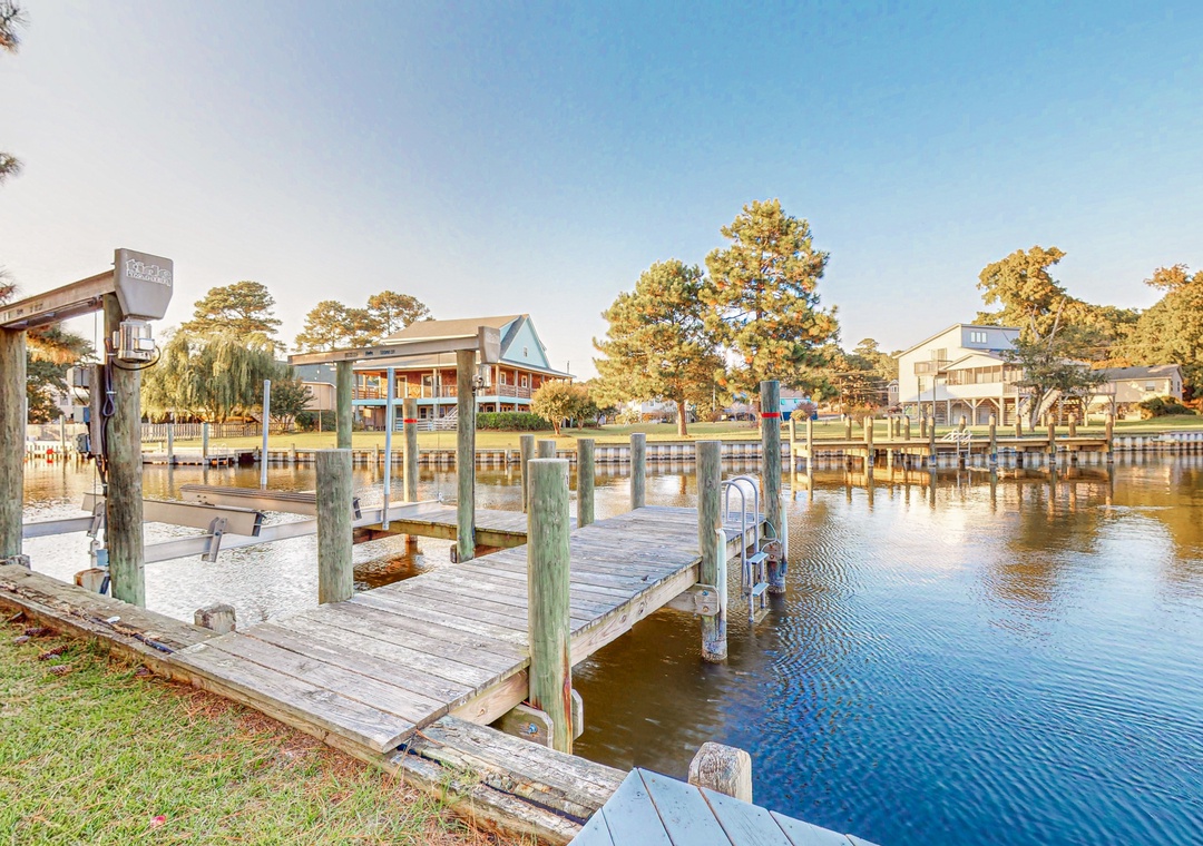 Escape to coastal paradise at this stunning 4-bedroom, 3-bathroom home located in the exclusive gated community of Colington Harbour in Kill Devil Hills, NC. Situated on an impressive canal frontage, this property offers breathtaking water views and easy sound access, creating a boater's dream come true.