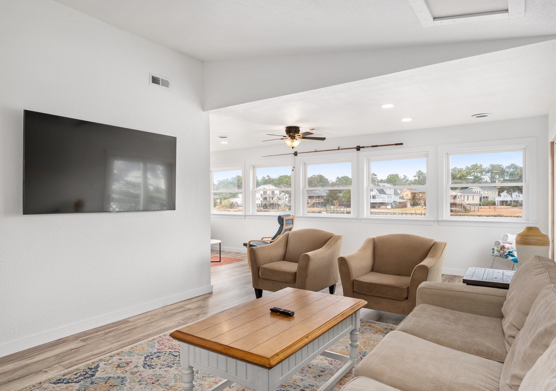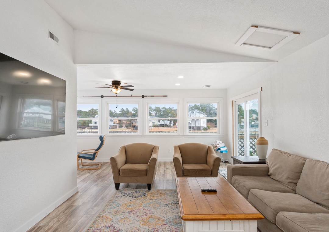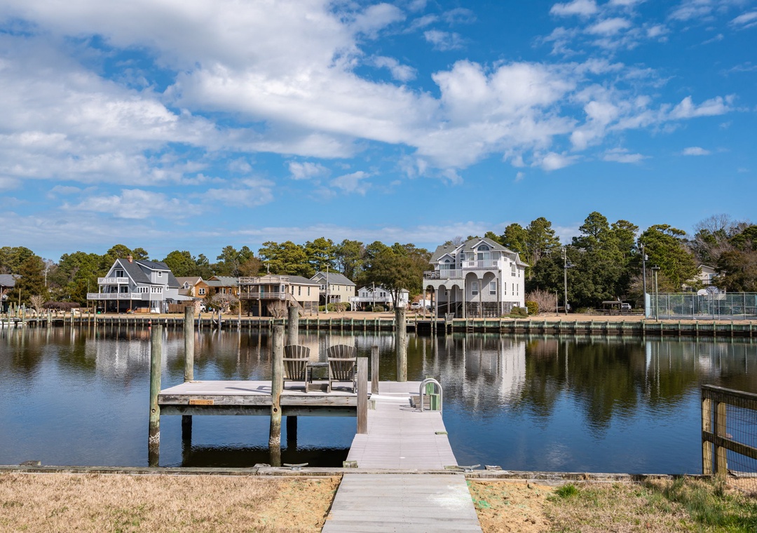 Never let the water out of sight at this beautifully renovated waterfront home - all that stands between you and your private boat dock is a sliding glass door! Spend sunny days swimming, crabbing, or launching kayaks and paddleboards off the pier. Bring your boat or rent one and explore the Outer Banks and miles of uninhabited beaches. You’ll also have access to a seasonal community pool and tennis courts.