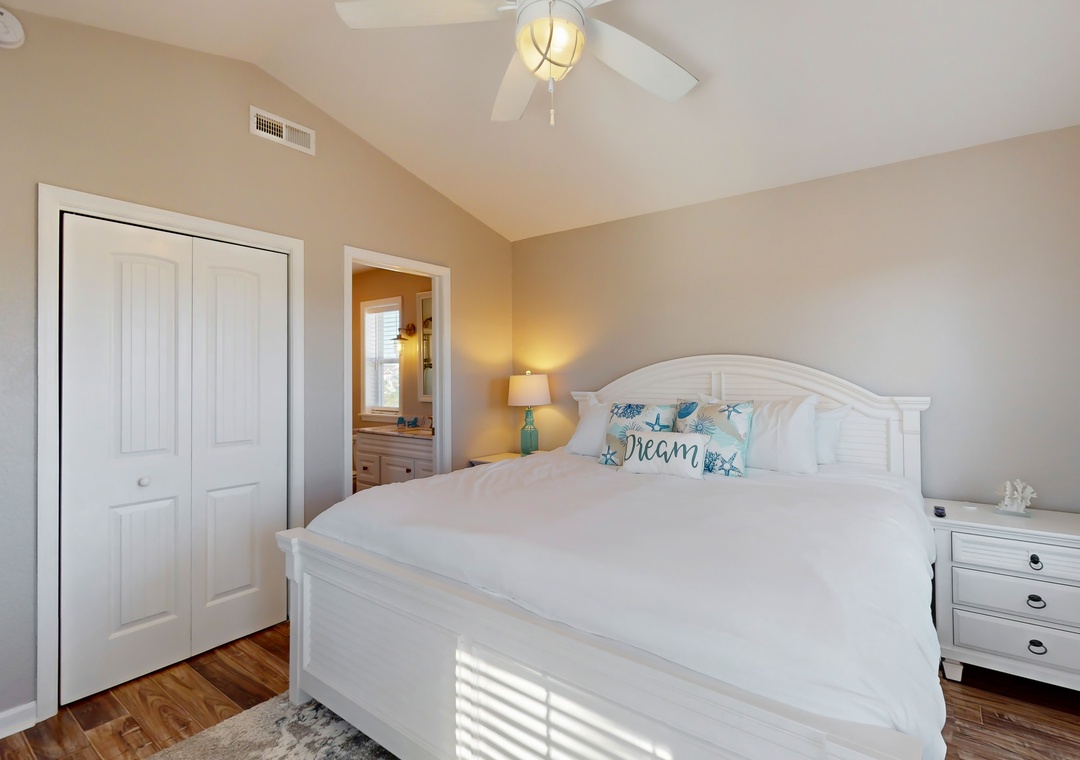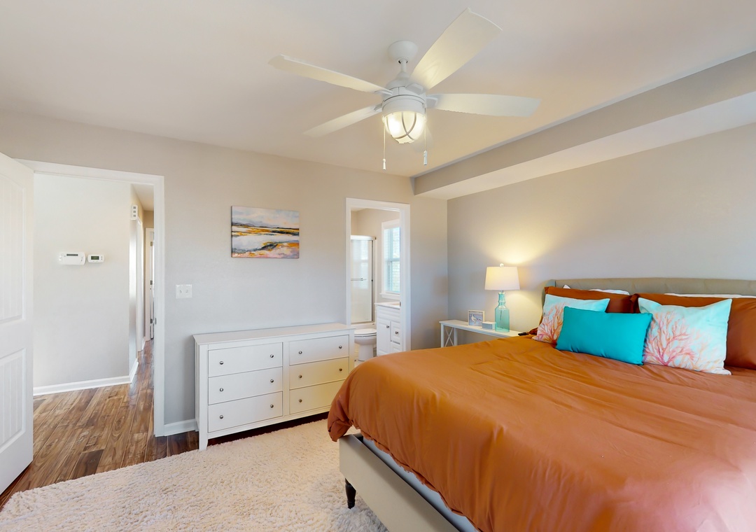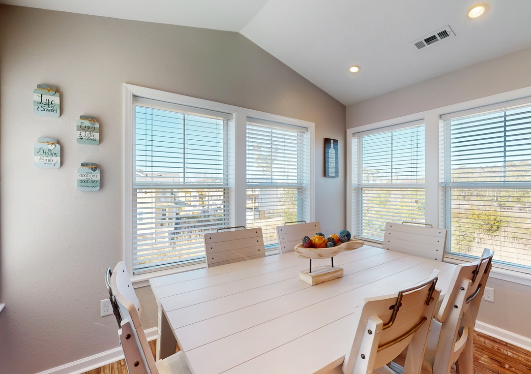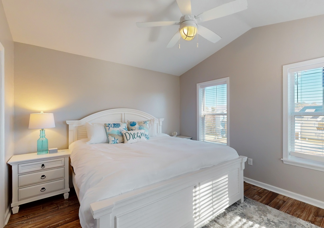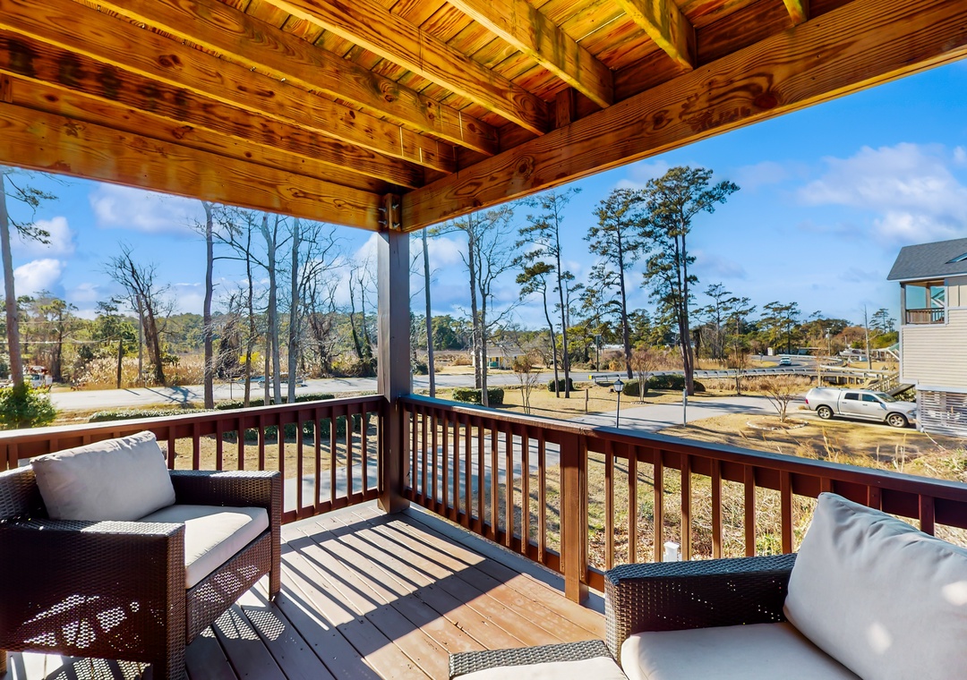As you enter this coastal charmer, you will be greeted by an entertaining game room offering a foosball table, two different standalone arcade games, and a cozy rec area with a Roku smart TV to stream your favorite series, shows, and sports games. This is a wonderful spot to gather and create everlasting memories with your family and friends! The second floor houses three coastal-themed bedrooms. One of the bedrooms is a primary suite with a smart TV, a working desk, an en suite bathroom, and a private deck with a swing. The second guest bedroom also boasts a smart TV, a working desk, and a private deck with seating.