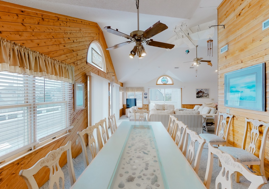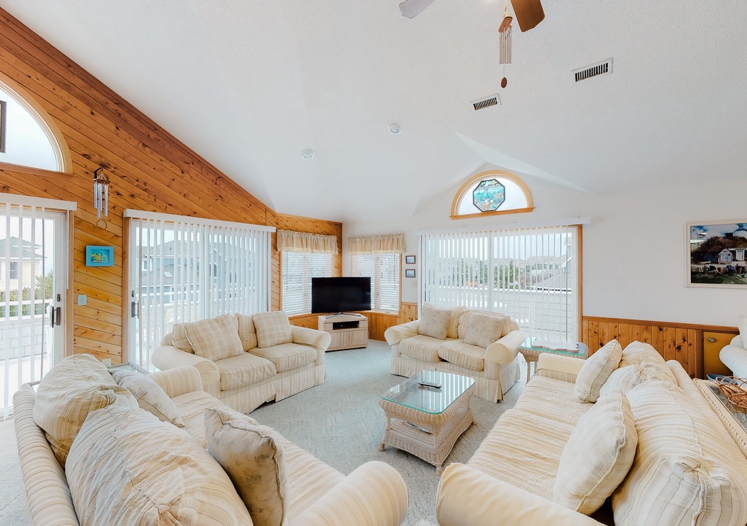 “Southern Memories” are yours for the making in this delightful semi-oceanfront home in Corolla Light. Featuring six spacious bedrooms and a huge great room with TONS of decking surrounding the house, you can bring the whole gang and still have plenty of room for private getaways. Watch the sun come up over the sparkling Atlantic from the comfy polywood chairs and loungers on the ocean-side deck or sip a cocktail in the furnished screen porch after a soak in the hot tub. There’s a game room with a pool table and wet bar to keep you entertained and the spacious kitchen is well stocked to feed the entire crowd. Additionally, you have access to all those fabulous Corolla Light amenities. The oceanfront pools are a short jaunt away and the activities director will keep the kids entertained all day. Or, catch the jitney over to the sound-side sports center for a refreshing workout or a set of racquetball. Of course, the beach access is directly across the street, so you can feel the ocean on your toes in no time at all. “Southern memories” has everything you and your family need to have the vacation of a lifetime!