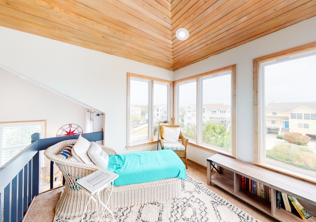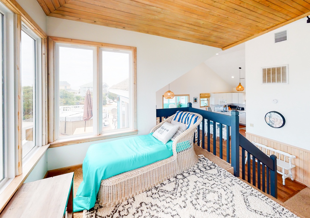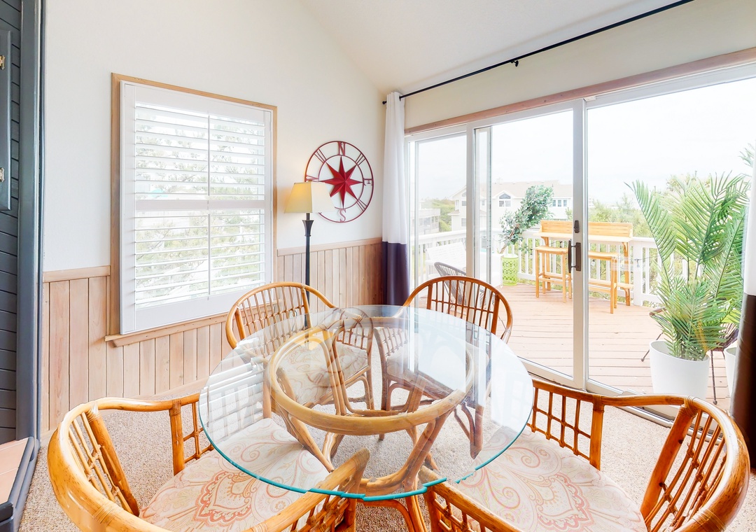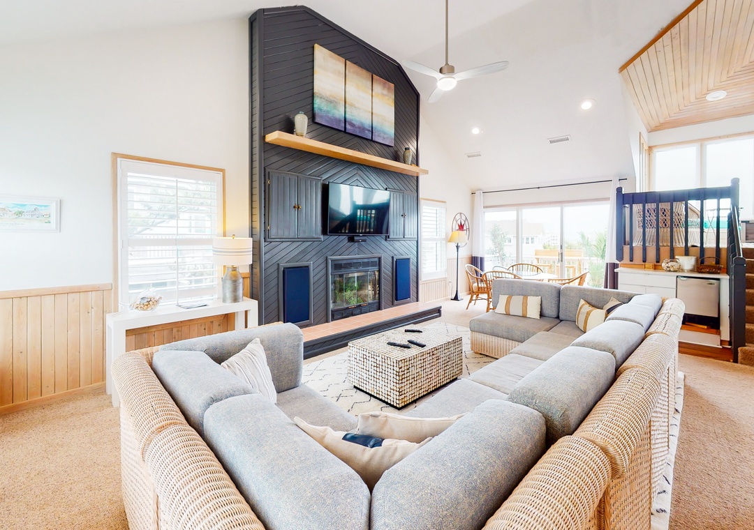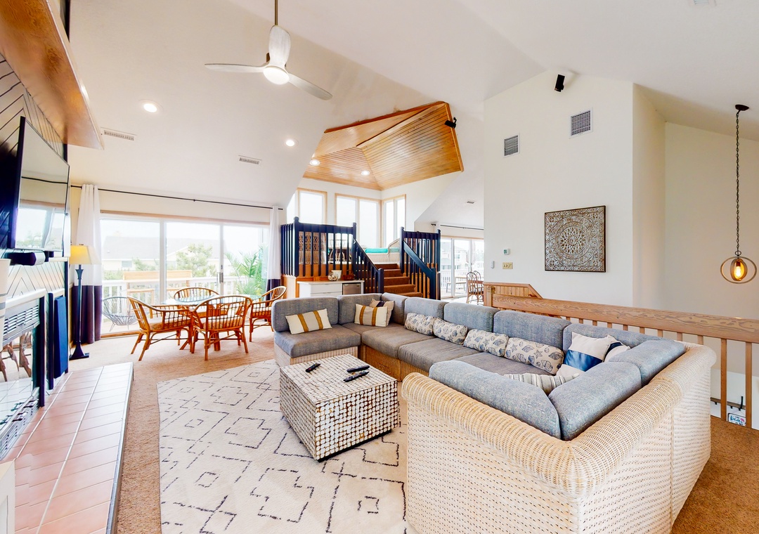 This comfortable and family-friendly home offers lovely ocean views - especially from the hot tub on the top deck (that faces the ocean). This house is located across the street from the beach access walkway and is the perfect place to vacation with your family dog! The private pool offers convenient family fun! The top level has a kitchen, a great room, an enclosed porch with a seven-foot pool table that converts to a Ping-Pong table, a half bath, and a ship's watch. Enjoy the hot tub located on this level's deck. The HOA offers trolley service from Memorial Day to Labor Day.