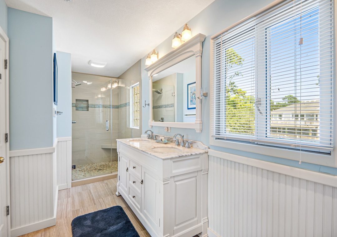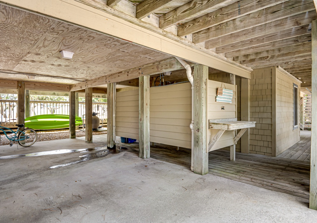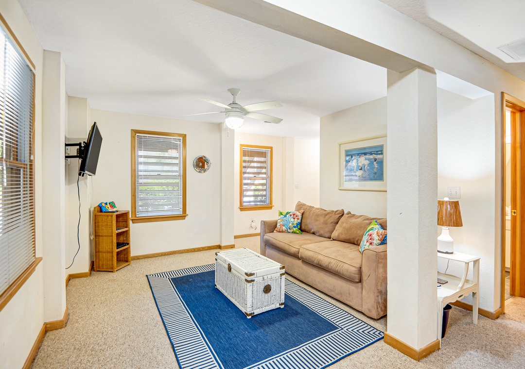 Ground Level: Has a new queen sofa bed, remodeled half bath, a new smart TV and DVD. Rounding out this level are double outside showers, a fish cleaning station, the pool, a large Weber charcoal grill, and a picnic table for Sound-front dining.