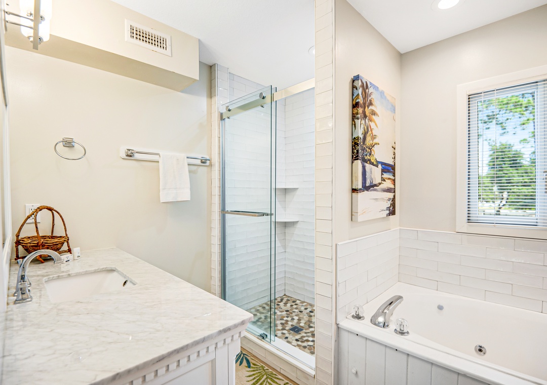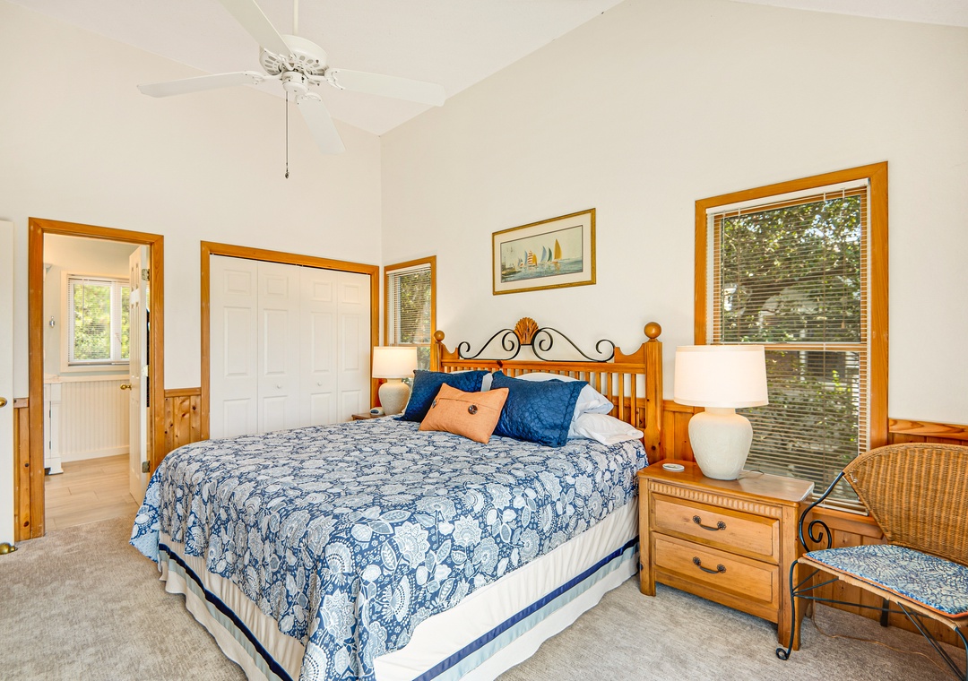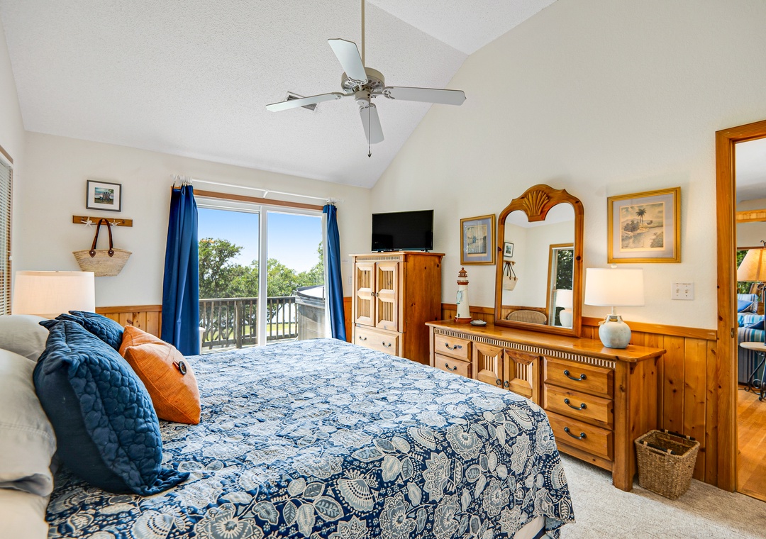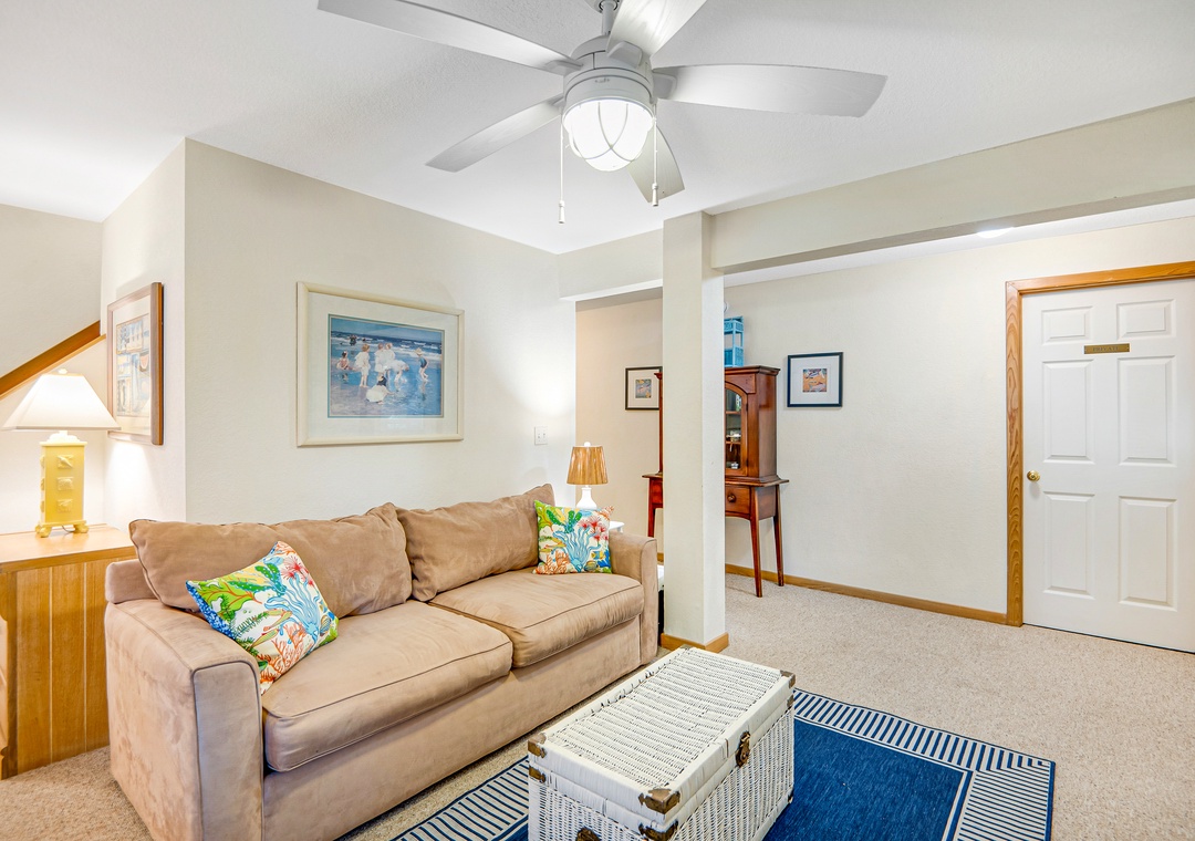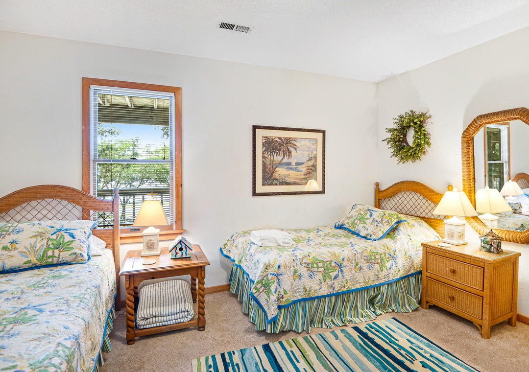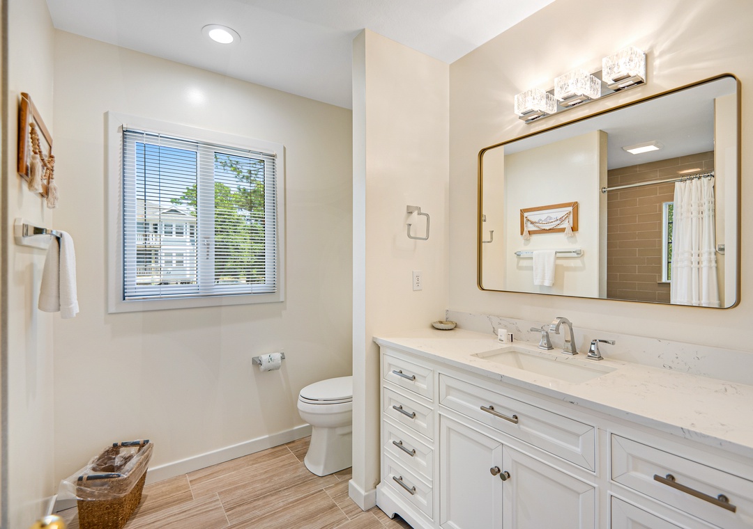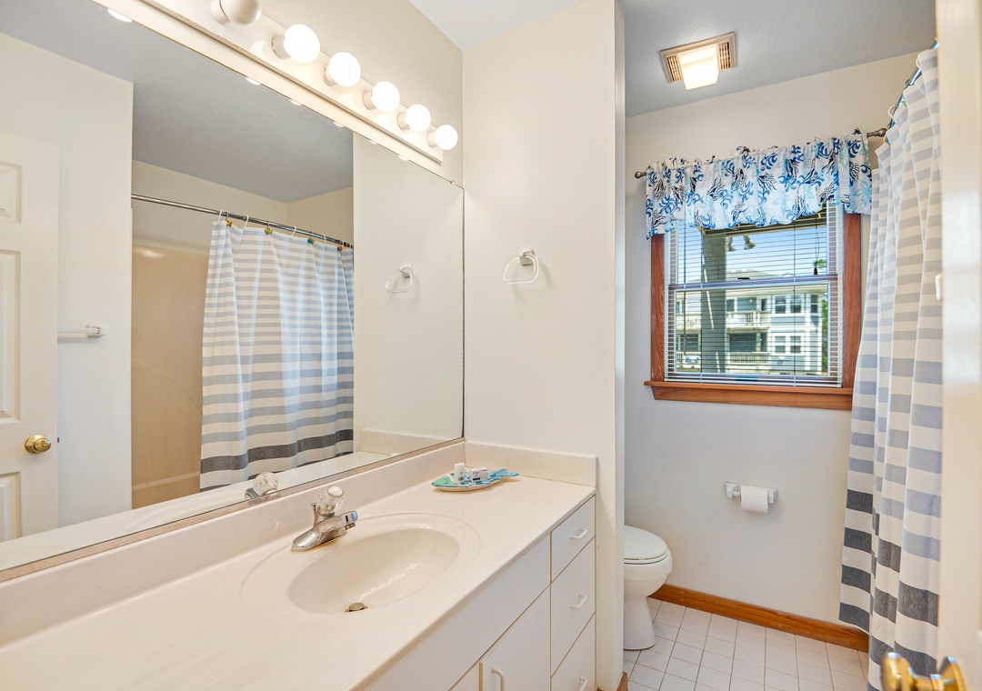 Mid Level: Has 2 King bedrooms with TVs and renovated private baths (one bath with whirlpool tub and one with a giant shower), a bedroom with 2 Bunk Sets, a bedroom with 2 Singles, a renovated full bath with tub for cleaning those little ones, and a roomy laundry room with large-capacity washer/dryer. The west deck is accessible from the primary bedrooms and has plenty of deck seating for sipping your favorite beverage.