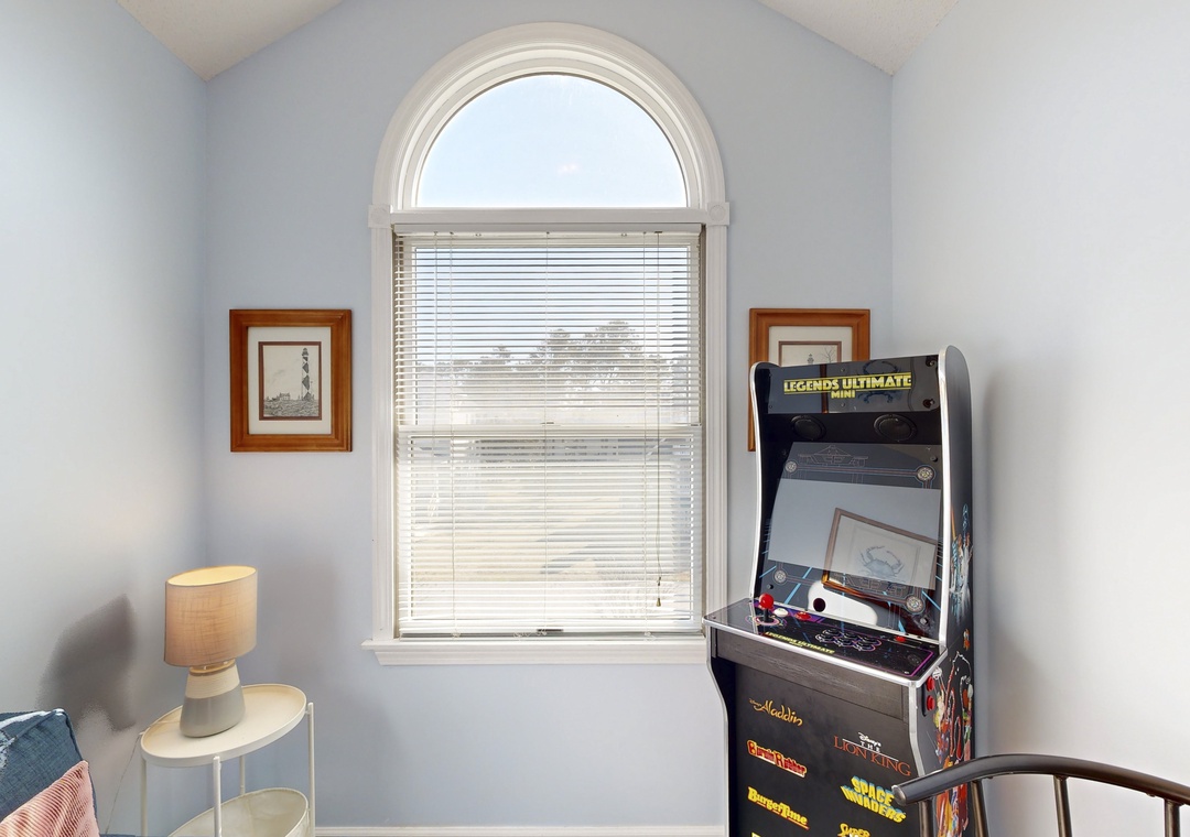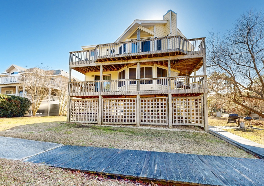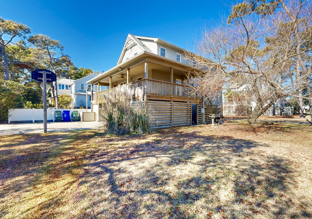 After a fun-filled day of surfing, shell hunting, or exploring Corolla, come home to unwind in style. Rinse off in the outdoor shower, sip your favorite drink on the wraparound decks, or challenge the family to a board game on the screened porch. When the evening cools down, slip into the private hot tub while the kids enjoy arcade games inside.