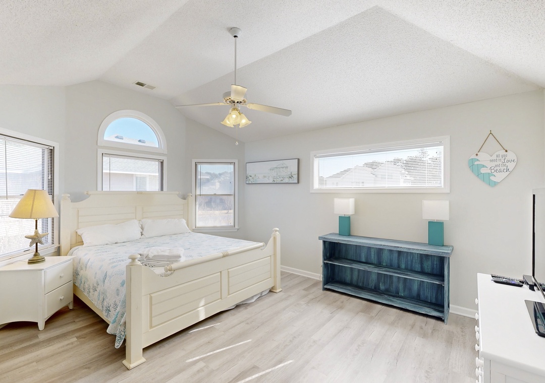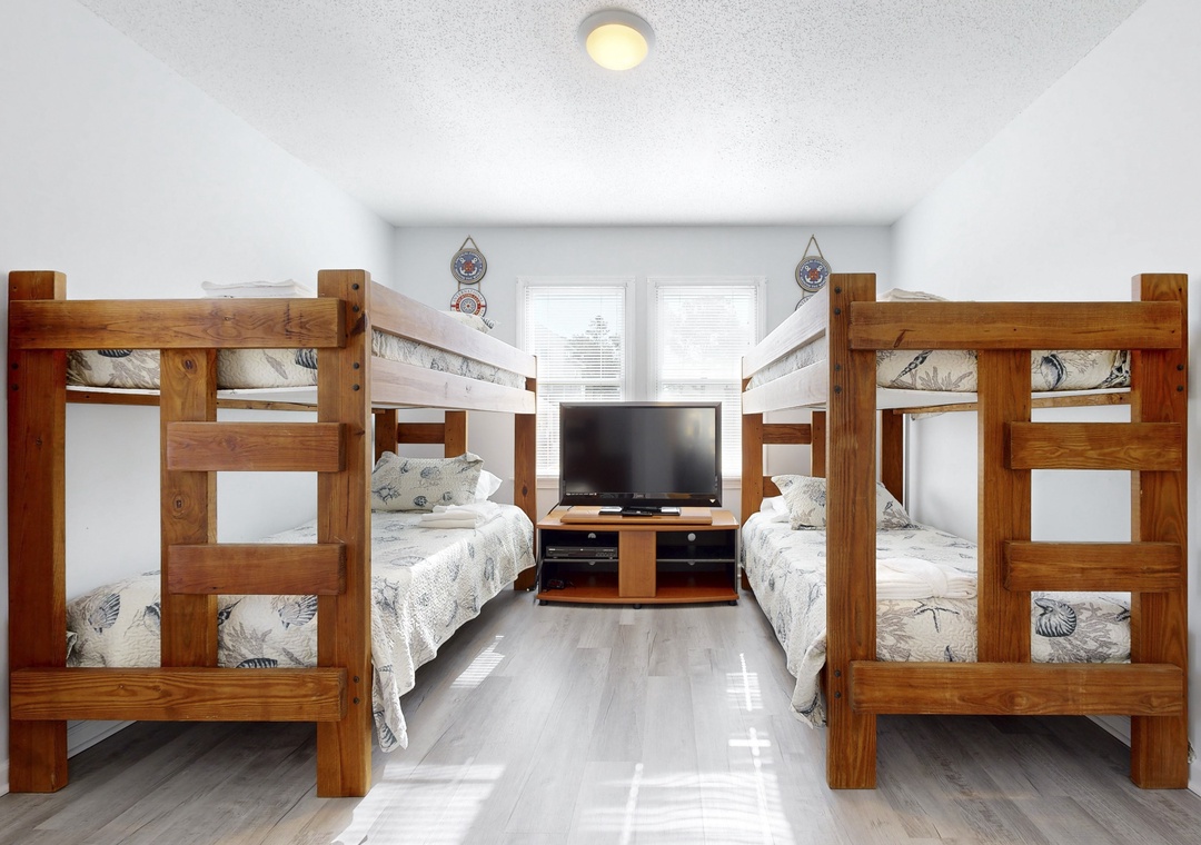 At bedtime, every bedroom has its own TV, so everyone can wind down their own way. With central air, a private washer/dryer, complimentary WiFi, and plenty of cozy nooks to relax, this home has everything you need for a memorable OBX escape.