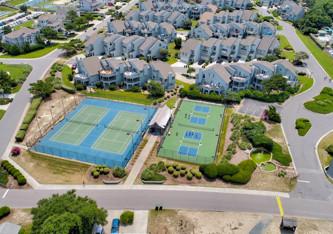 Guests have access to the Corolla Light Recreational Amenities. Guests are instructed to pick up their resort information and amenity bracelets on the first day of their reservation at the Corolla Light Sports Center located at 1026 Ocean Trail, Corolla, NC 27927. Your check-in time is not until 4:00 PM, but you can take advantage of the resort amenities as soon as you retrieve your information from the Sports Center, as early as 9 am on your scheduled check-in day.