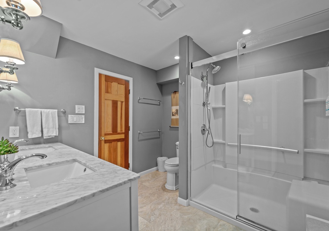 * 1 King bedroom and 1 Queen bedroom, each with vanity and sink