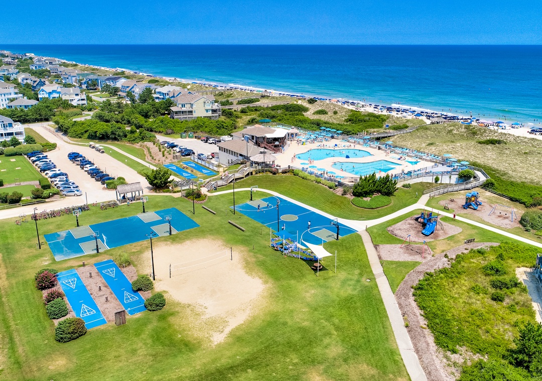 Guests have access to the Corolla Light Recreational Amenities. Guests are instructed to pick up their resort information and amenity bracelets on the first day of their reservation at the Corolla Light Sports Center located at 1026 Ocean Trail Corolla, NC 27927. Your check in time is not until 4:00 PM but you can take advantage of the resort amenities as soon as you retrieve your information from the Sports center, as early as 9 am on your scheduled check-in day.