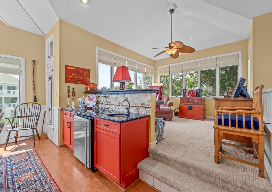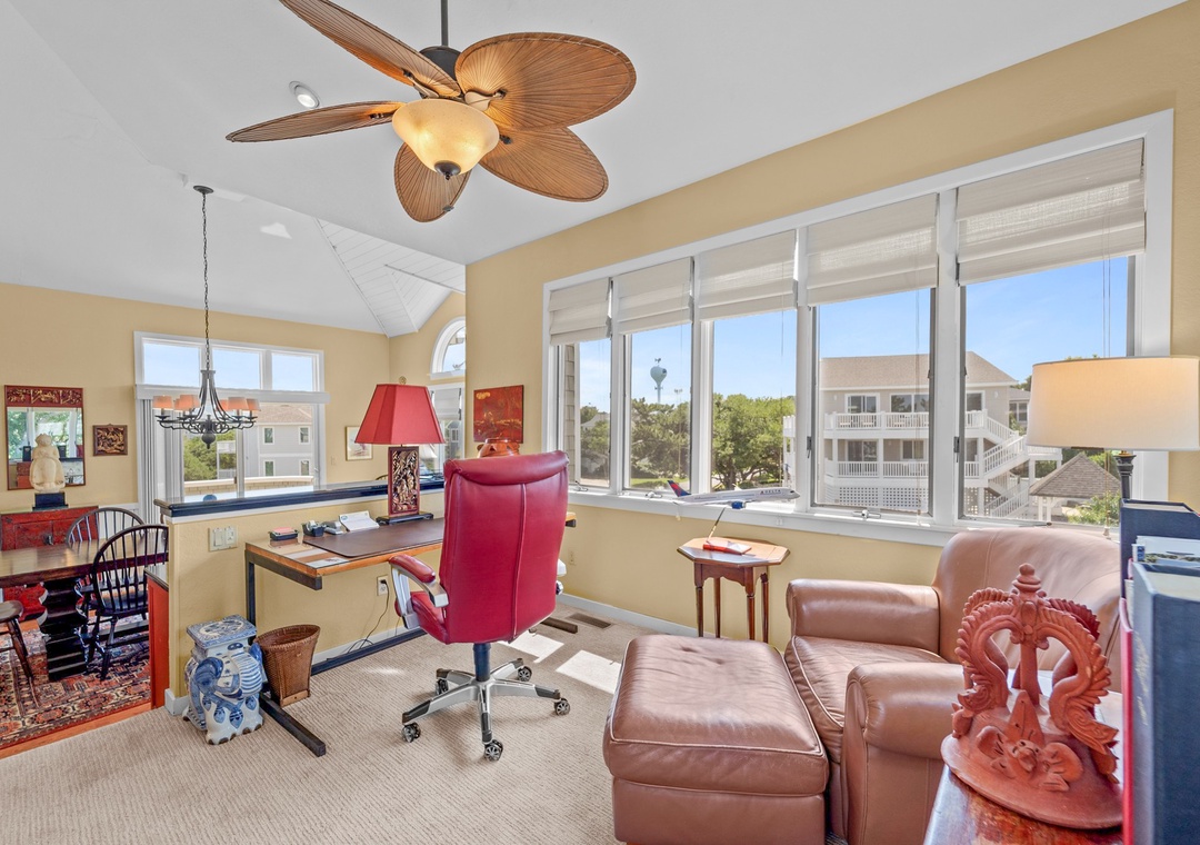 * Separate loft sitting room with ocean views and workspace.