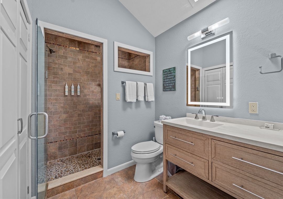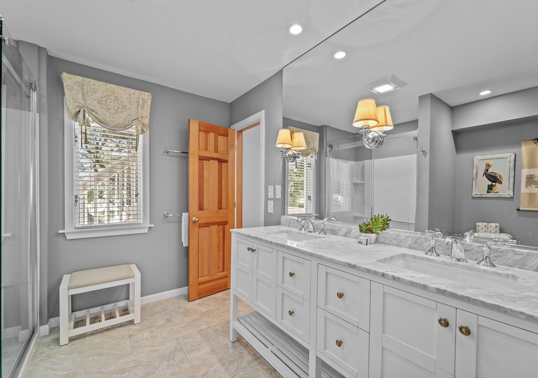 * Primary King suite with a newly remodeled bathroom (2025) and private ocean-view porch