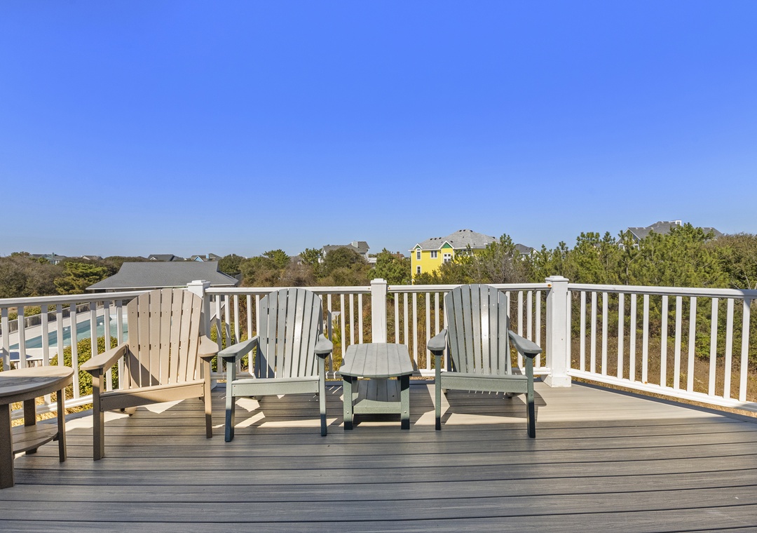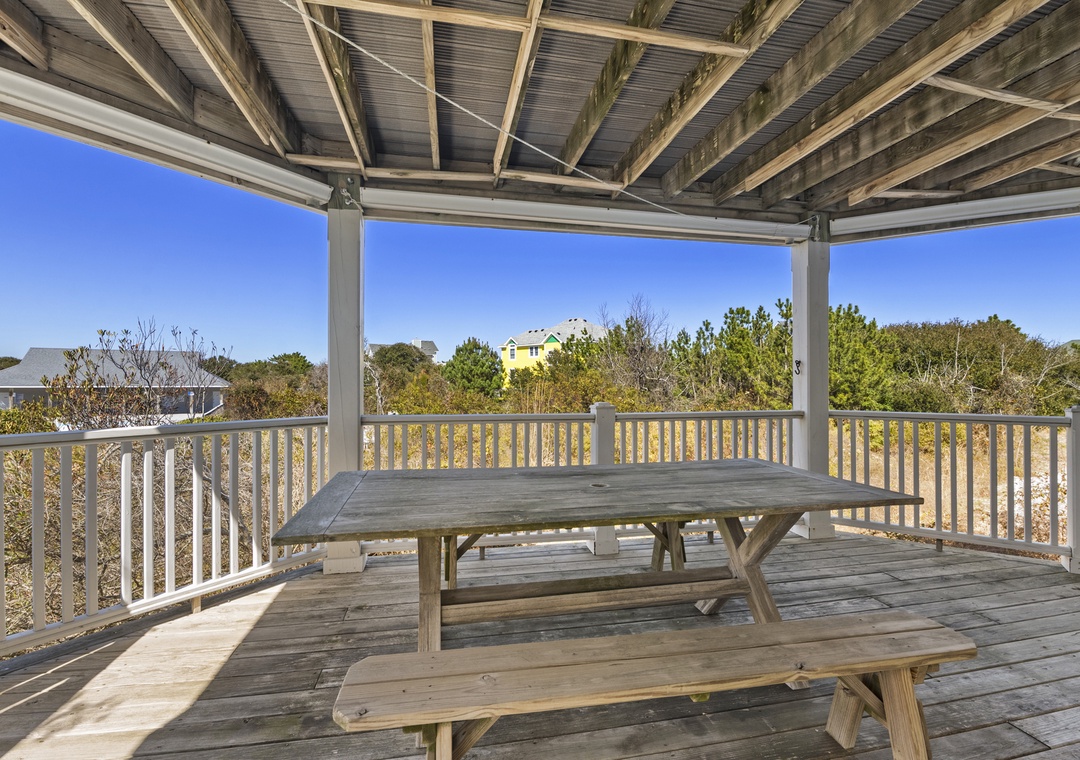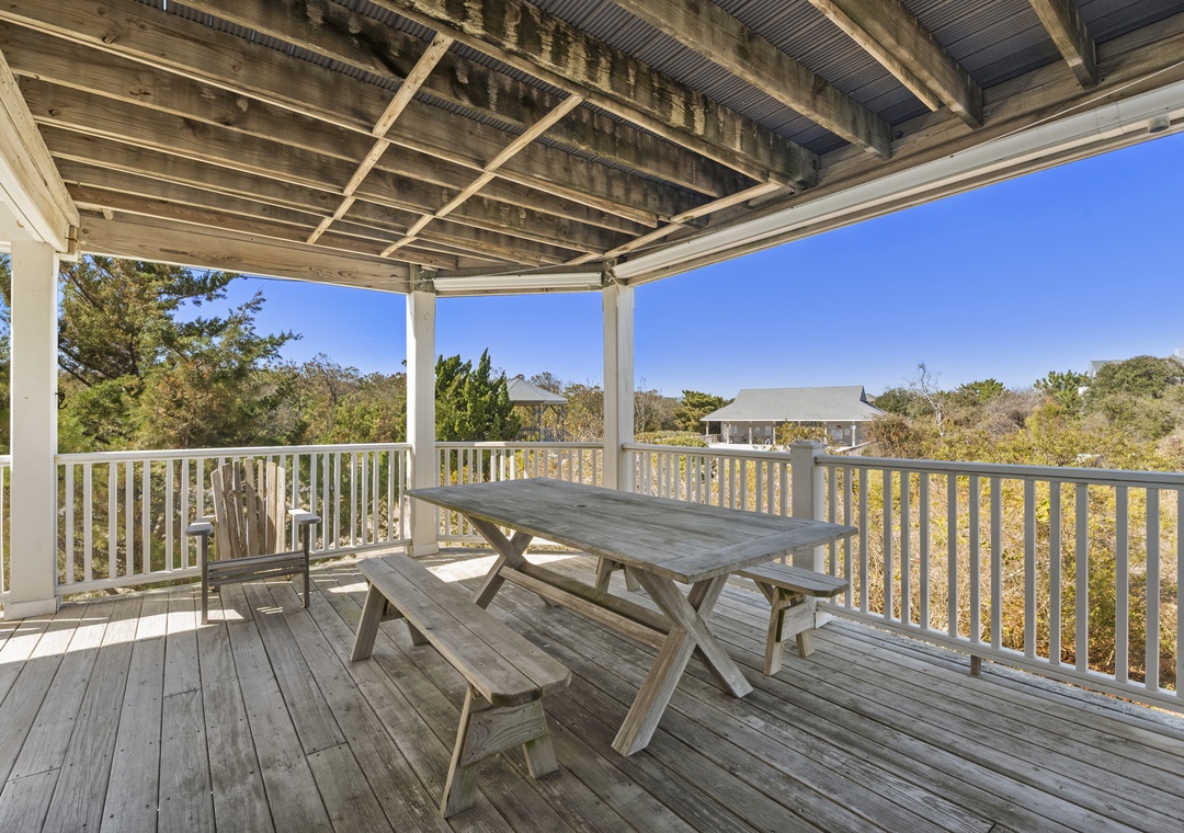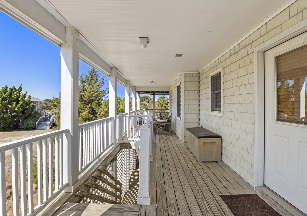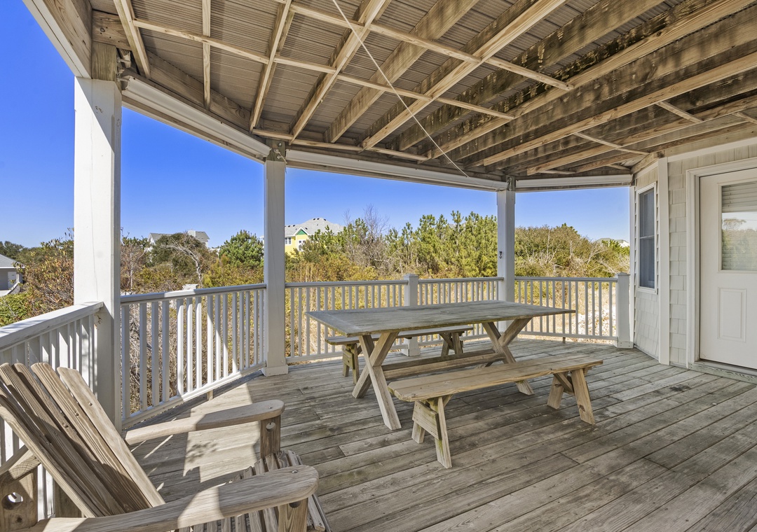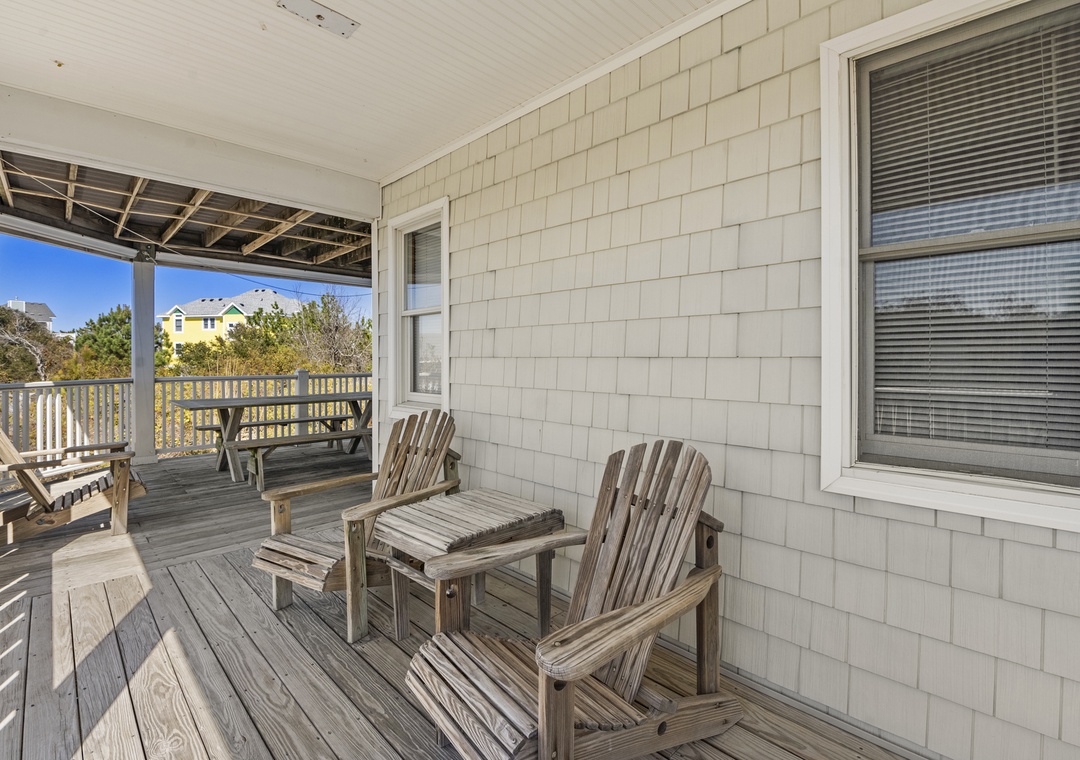 Multiple levels of decks, both covered and open, provide sunny spots and shady retreats so everyone can find their favorite place to relax—whether that’s lounging with a book, watching the kids head to the pool, or enjoying a quiet evening glass of wine. A ground-level outdoor area and convenient parking make loading in beach gear and groceries simple.