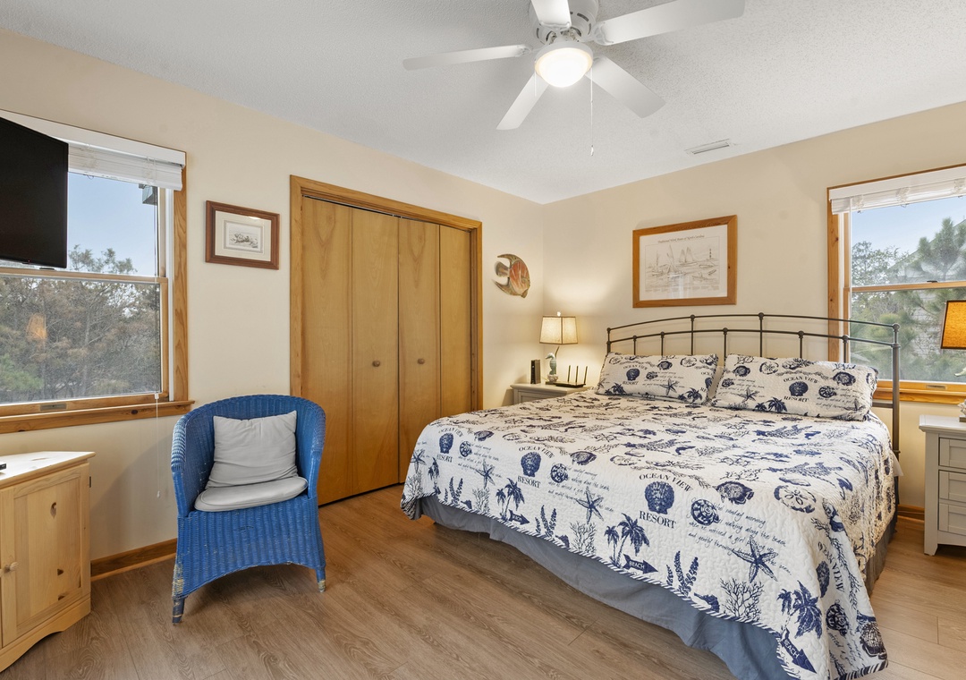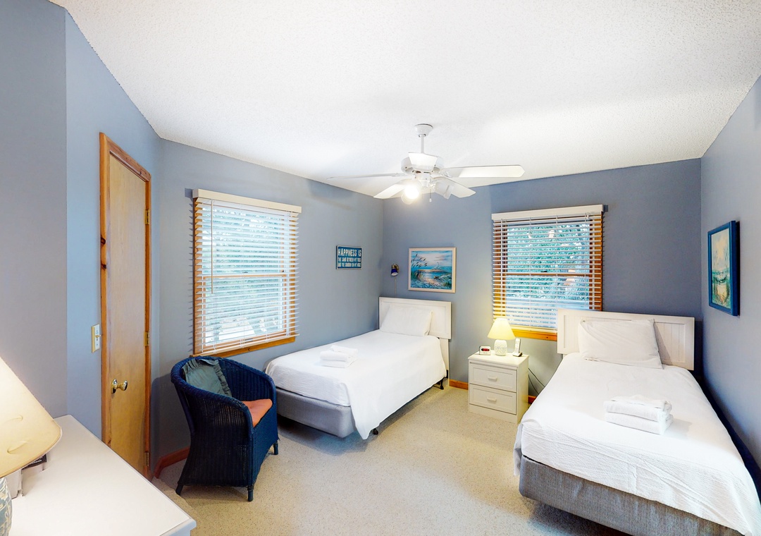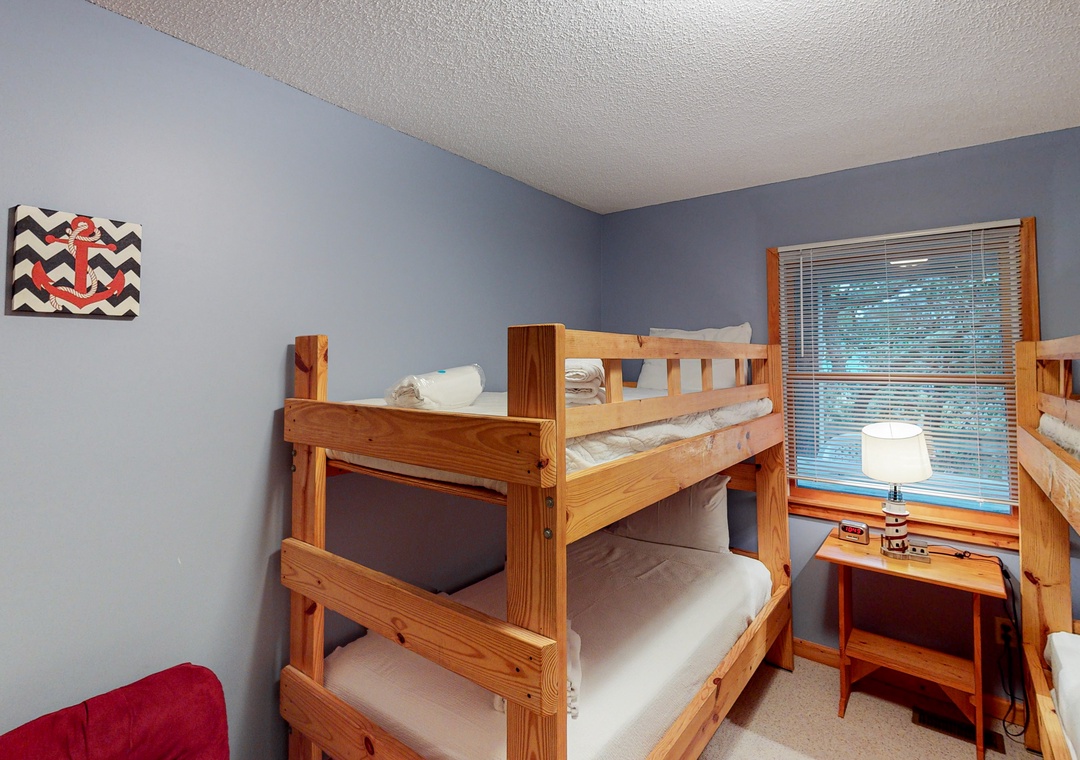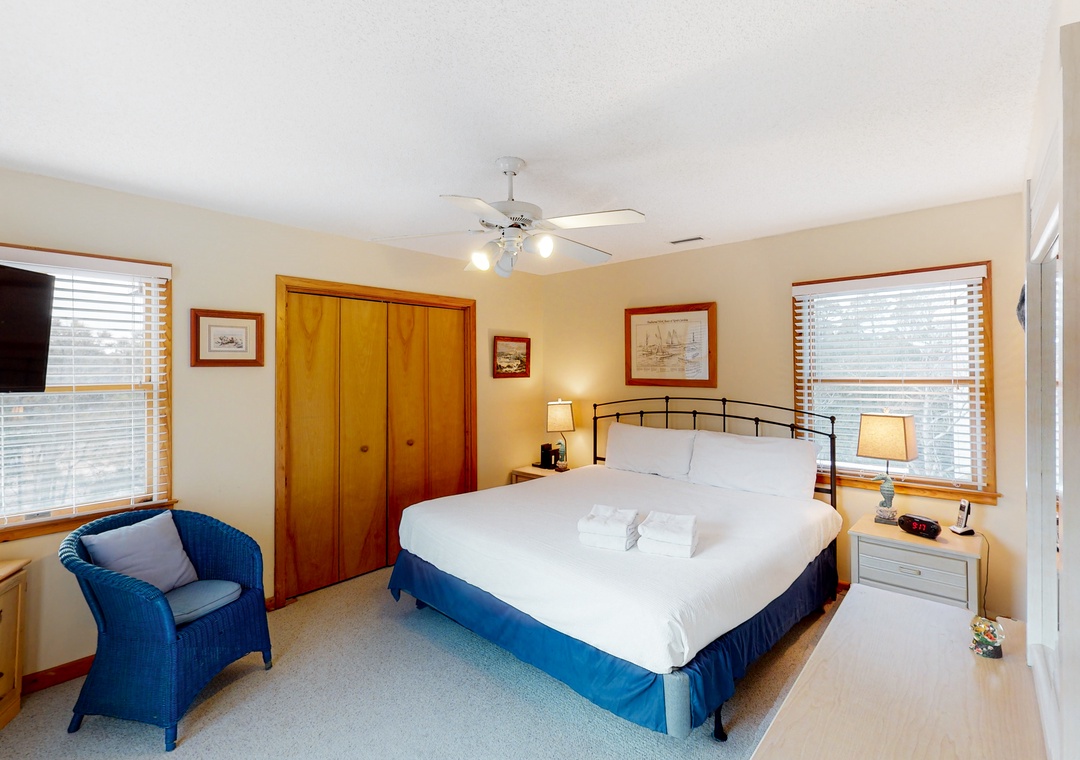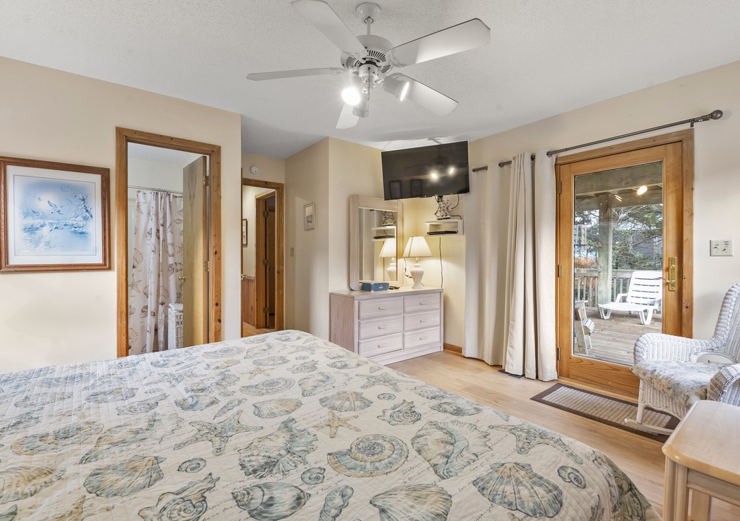 Two lovely primary bedrooms boast deck access; all bedrooms have TVs with DVD players.