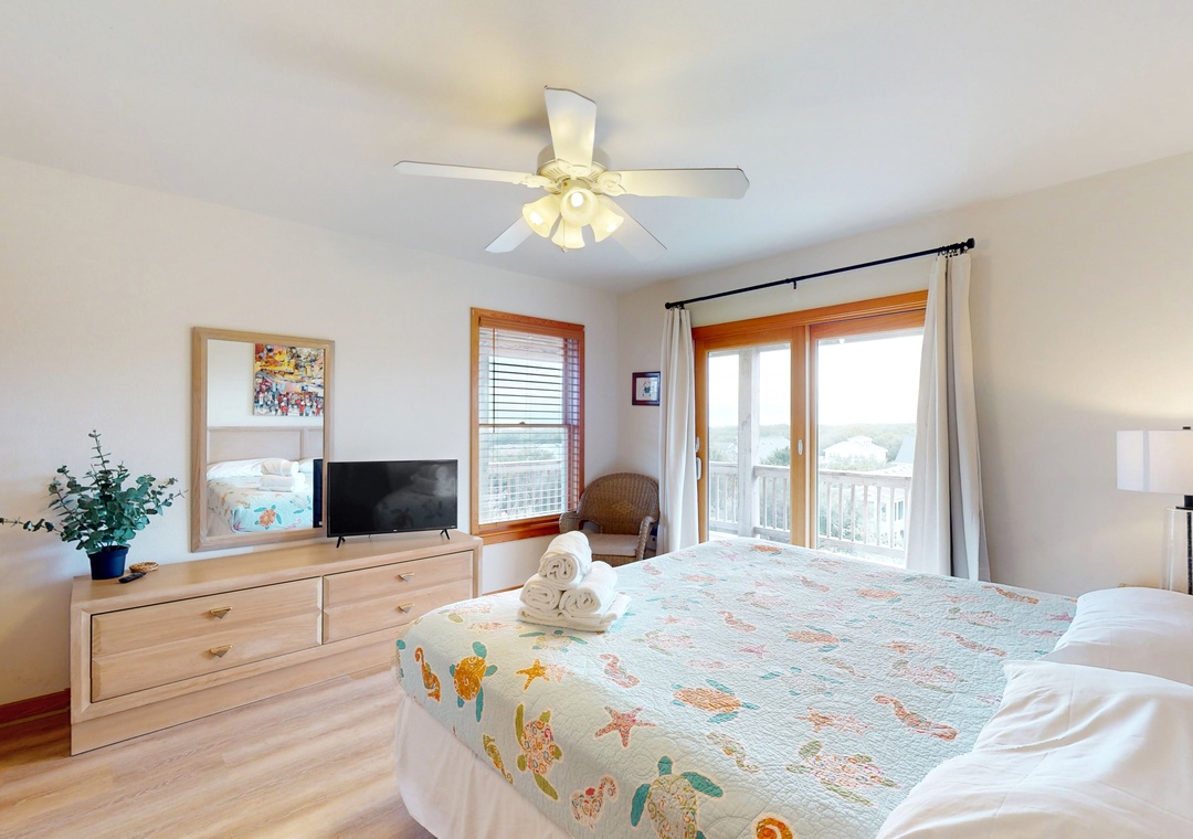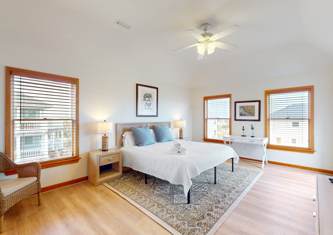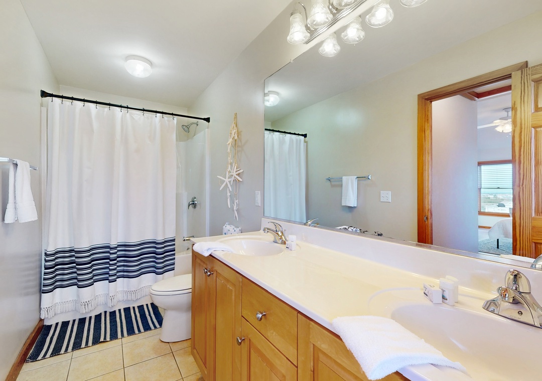 Thank you. Glad the ocean views, en-suite bathrooms in every room, great pool, and easy walk to the beach made your stay enjoyable. We’re happy the house was well stocked and very clean. We appreciate your feedback and hope to welcome you back to Village Realty soon.Village Realty staff