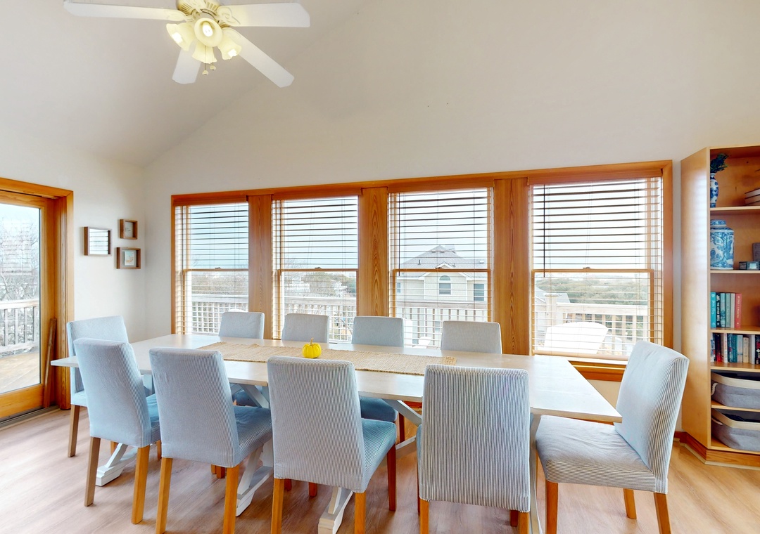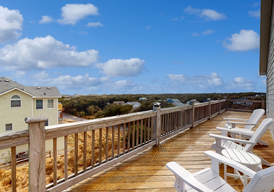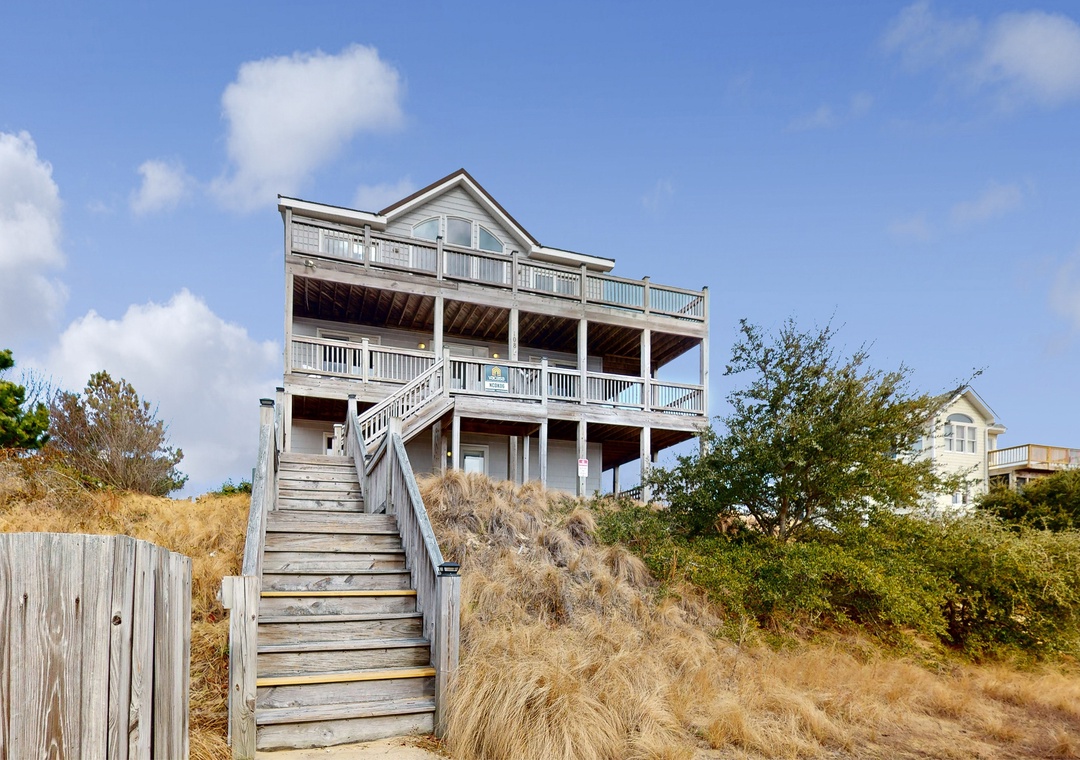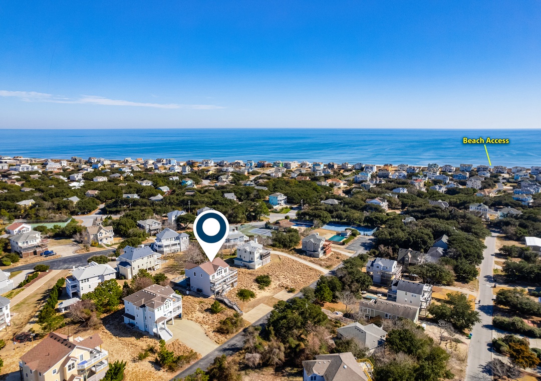 Escape to coastal, North Carolina living at this Outer Banks retreat! Perfect for family getaways, this seven-bedroom stunner boasts panoramic ocean views, a bevy of in-home amenities, and plenty of space for guests to spread out in comfort. Two levels of expansive, wraparound decks come fully furnished for sunbathing, easy lounging, and al fresco dining. A private, enclosed pool promises ample opportunity for fun with family and friends while the hot tub offers soothing soaks any time of day. Take advantage of the home's prime access to world-class Atlantic beaches or explore the waters around Currituck Sound. Guests will also enjoy access to community tennis courts, just an easy walk down the street. After a day on the beach, there is a hose in the front of the house that guests can use to rinse off the sand, in addition to a convenient outdoor shower.