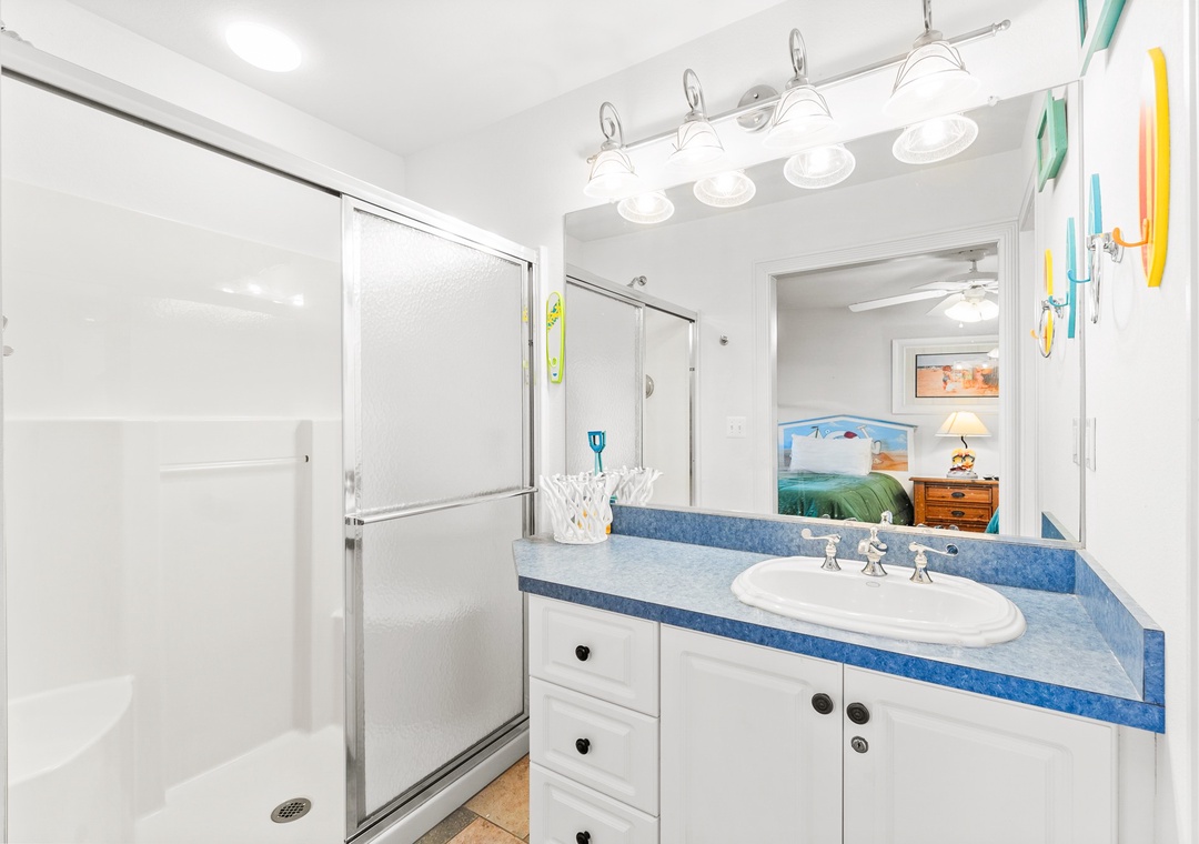Two expansive primary suites offer ensuite baths with dual vanities and walk-in showers, giving everyone extra privacy and comfort. Four additional guest bedrooms, including a bunk room, are outfitted with soft linens and central air to ensure a restful night’s sleep for multi-generational families and groups.