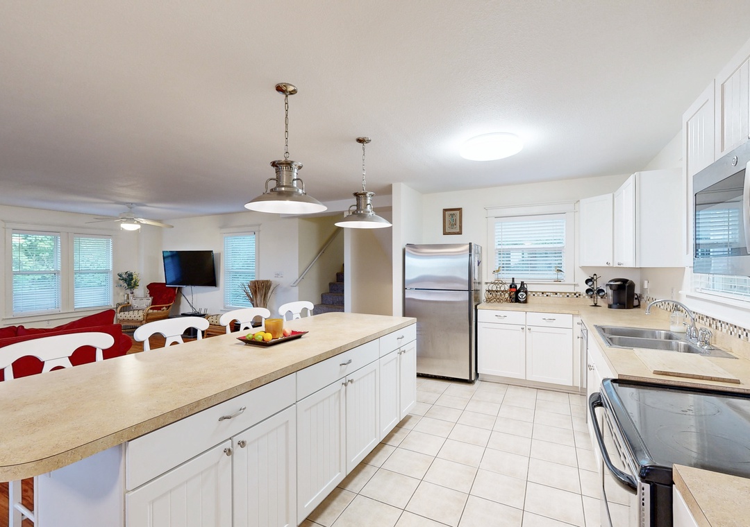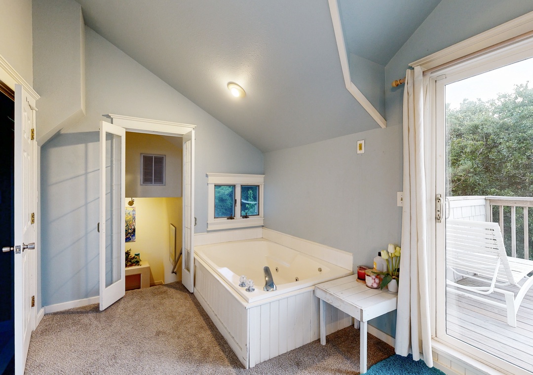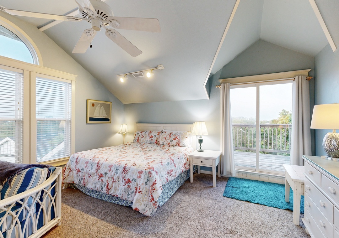 The primary bedroom is an oasis in itself with its sprawling living quarters, tasteful nautical decor, private balcony access, and an in-room jetted tub. The additional three bedrooms are just as comfortable with their central air-conditioning and plush linens.