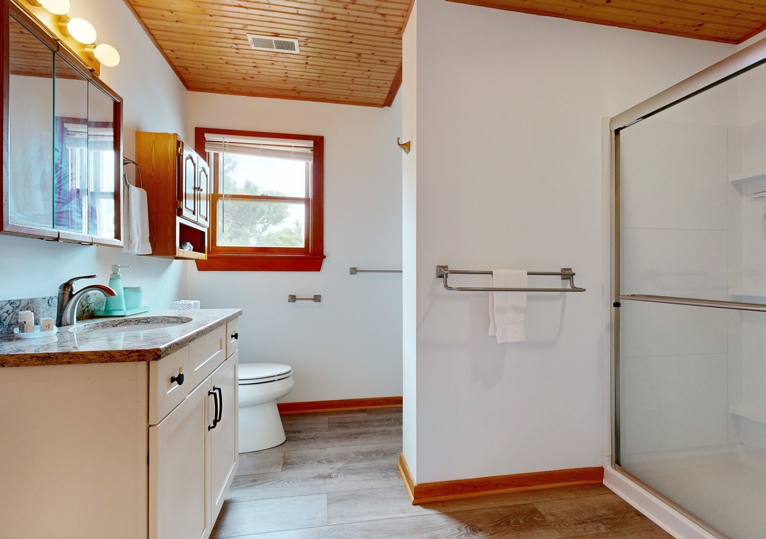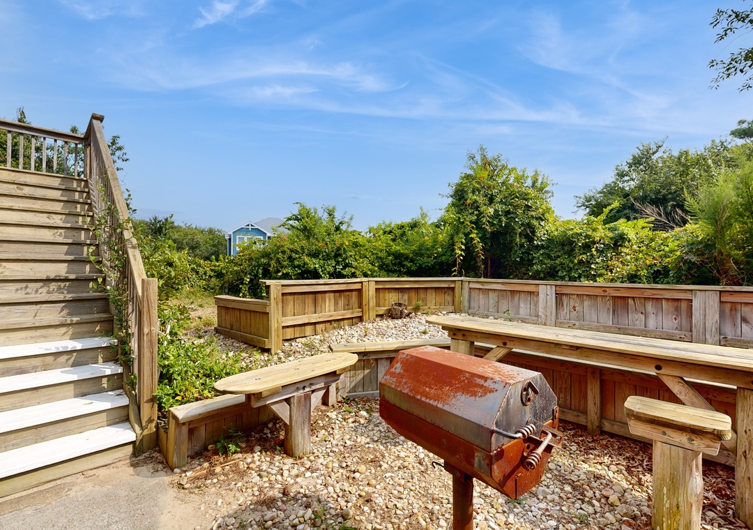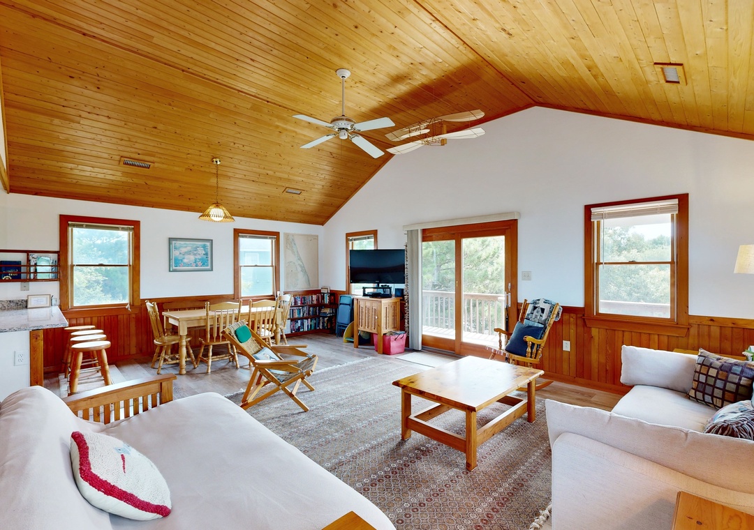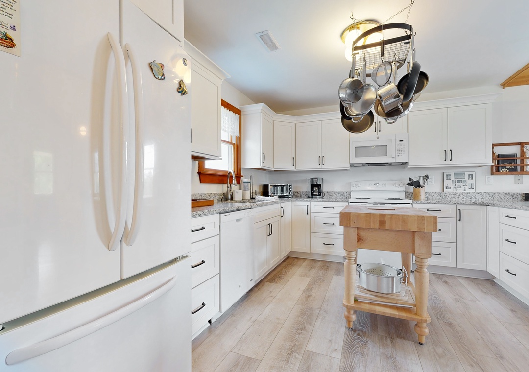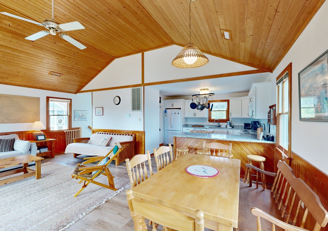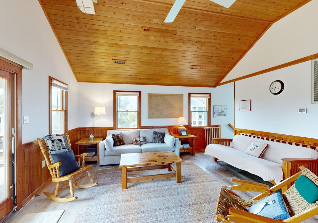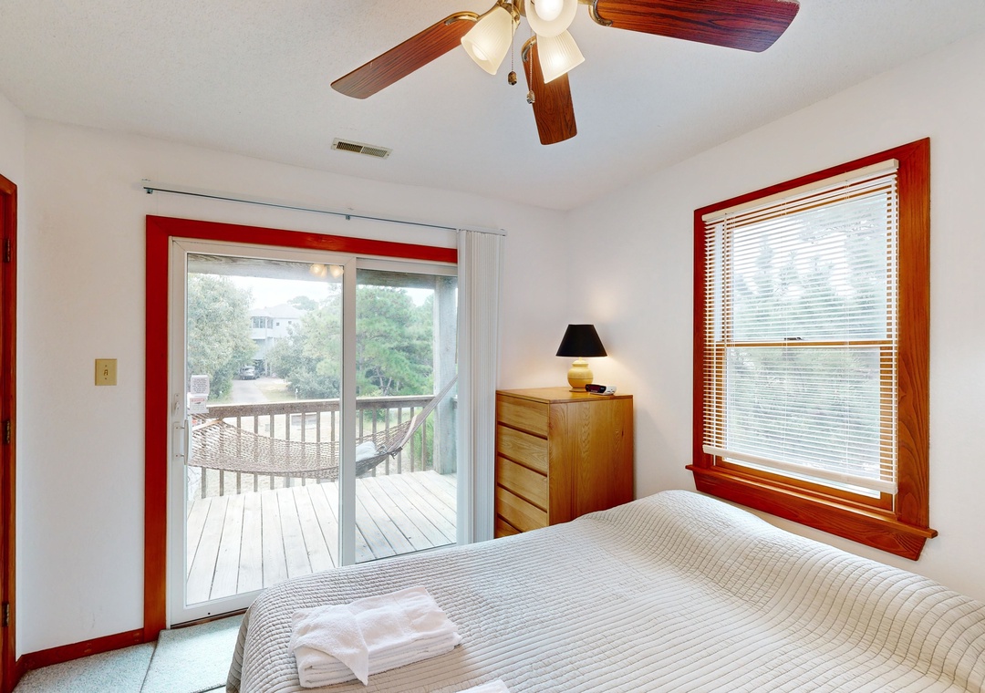 Walking distance from both the beach and Duck Village, this family-friendly home is perfect for group vacations. Relax with plenty of room for everyone on the main floor. The recently renovated full kitchen is perfect for groups looking to cook together - it features a French door refrigerator, a prep island, and plenty of counter space. If you'd rather enjoy the sunshine, head out to cook out on the private gas grill. Wind down in the central air conditioning with a book or a DVD from the provided DVD library. Two bedrooms feature private entrances to the front gated deck, and a desk workspace is available in one bedroom if anyone needs to finish remote work or schooling. This same bedroom features a private entrance to the hall bathroom that features a standalone shower. Prepare for easy relaxation in this charming space with room for everyone. Best of all, you will be a short stroll from Duck Village for great shopping, restaurants, the Duck Boardwalk, watersports activities, sound front sunsets, concerts in Duck park, and more! Nature lovers can enjoy the Pine Island Audubon Sanctuary less than 8 miles away.
