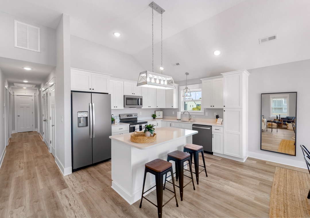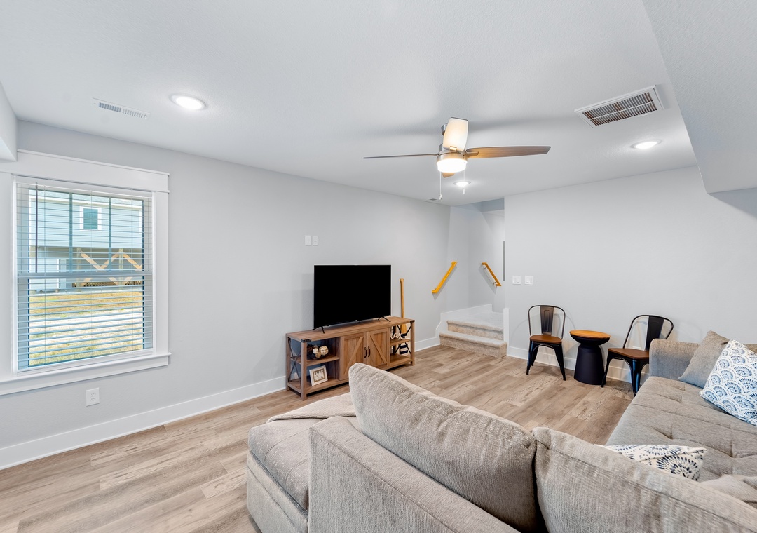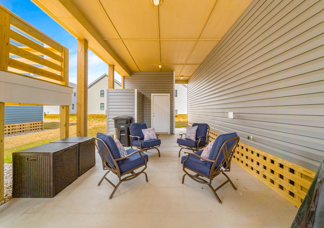Built in 2022, this polished home is a joy to return to after a day of salt and sand at the beach. Rinse off in the outdoor shower, toss your swimsuits and towels in the washer/dryer, and relax in the shade of the patio with burgers sizzling on the gas grill. When the sun begins to set, move upstairs to the deck to take in a gorgeous view of the illuminated evening sky.