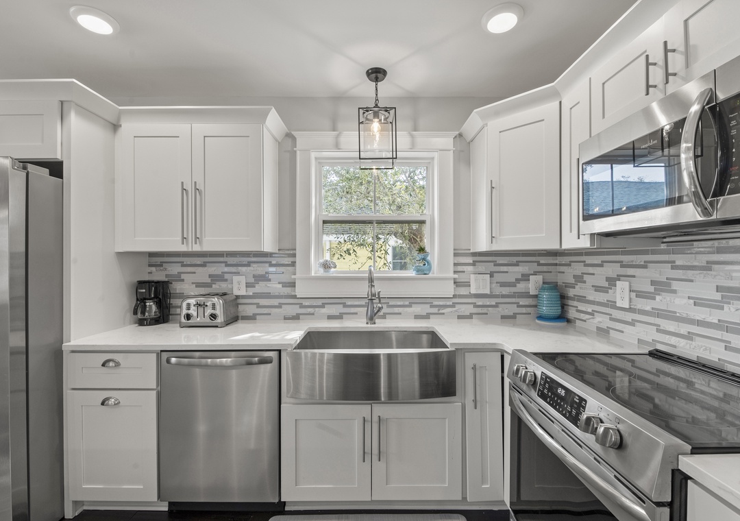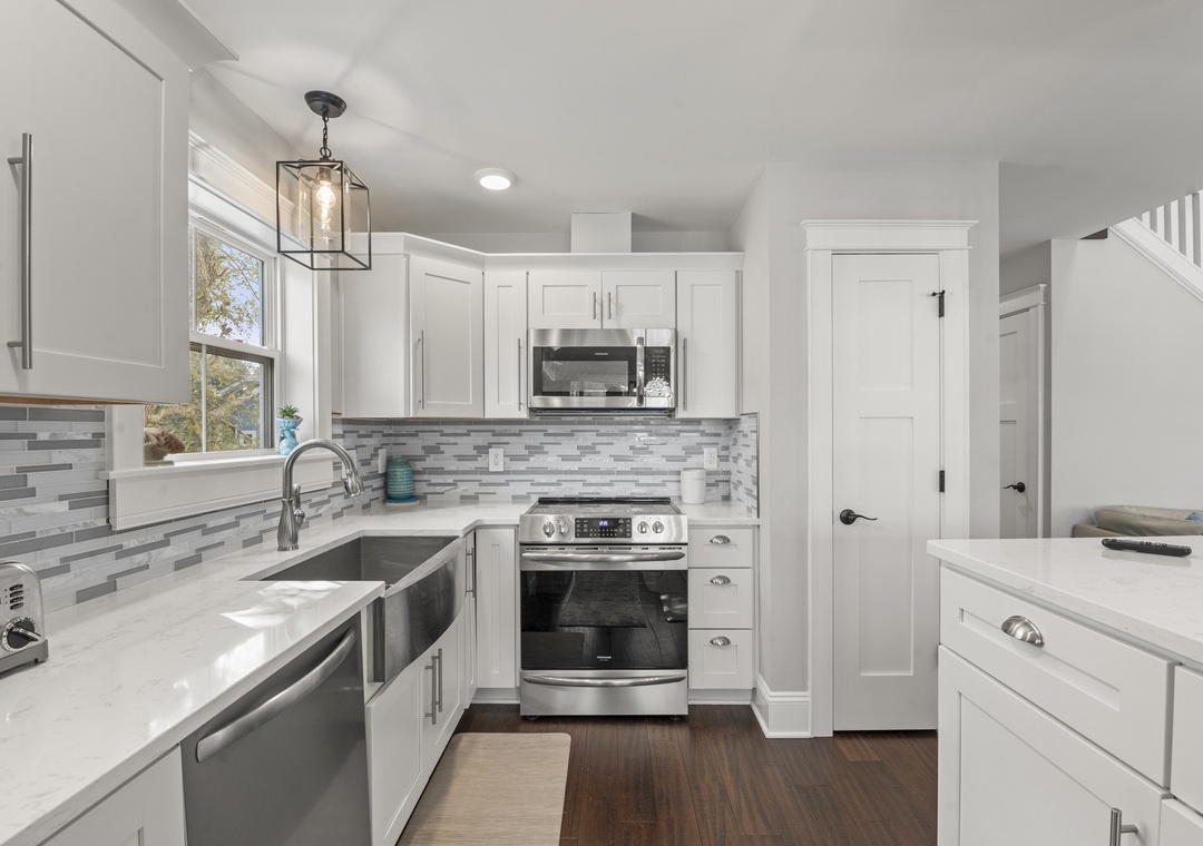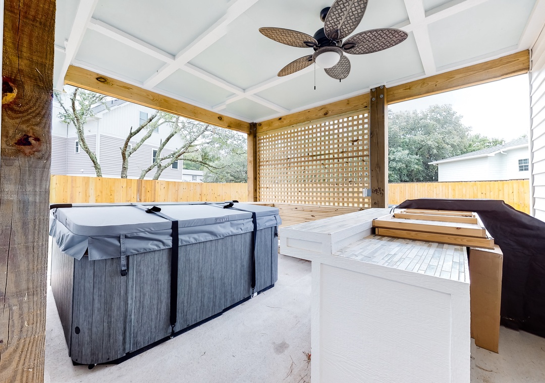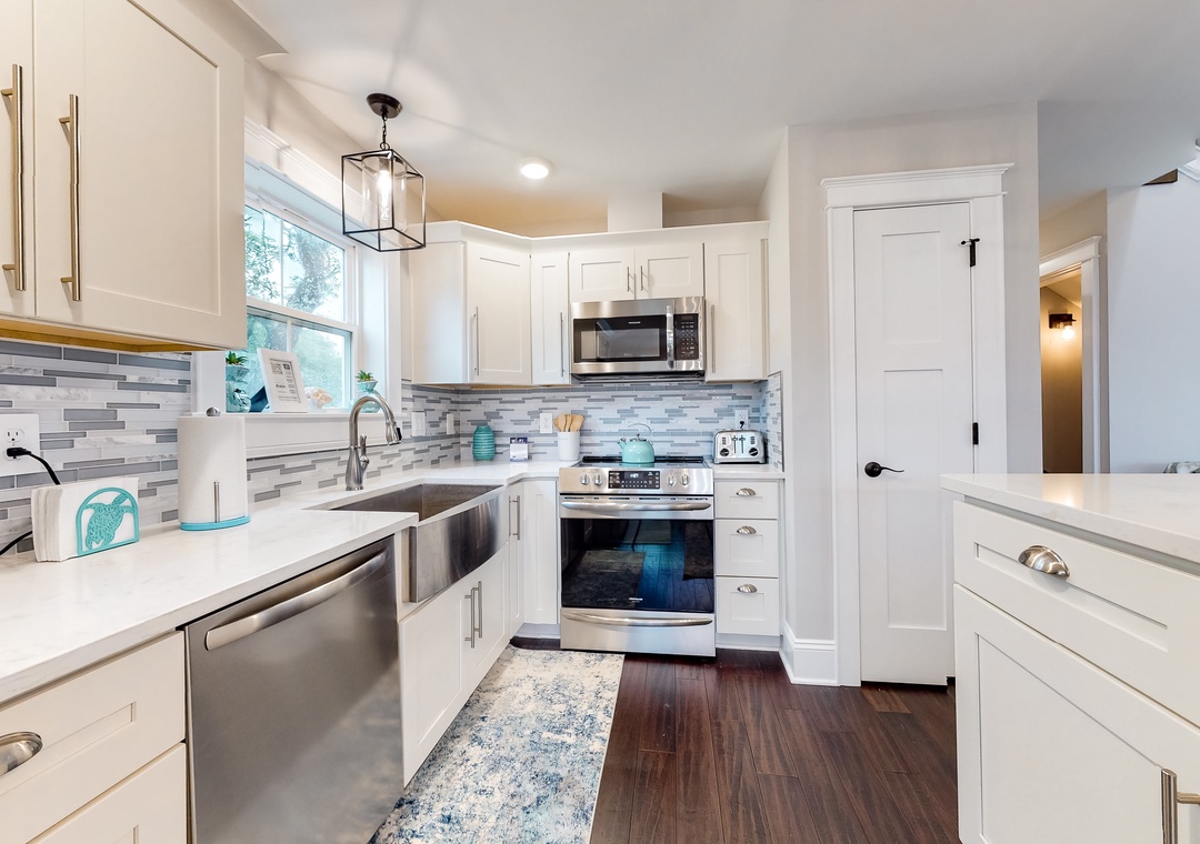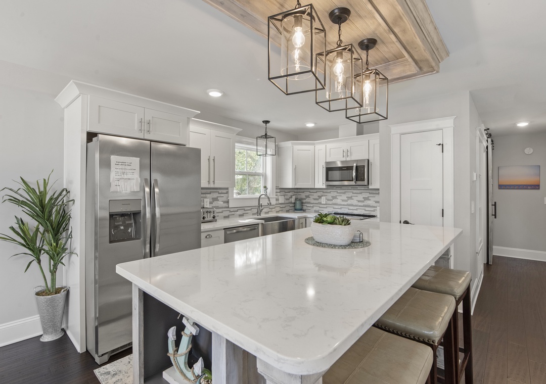 Outside, enjoy the radiant North Carolina sunshine from the sprawling enclosed yard, while grilling, or sitting at the custom-made bar. As evening falls, sink into the warmth of the private hot tub and completely unwind.