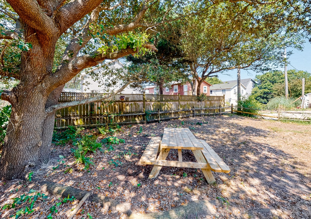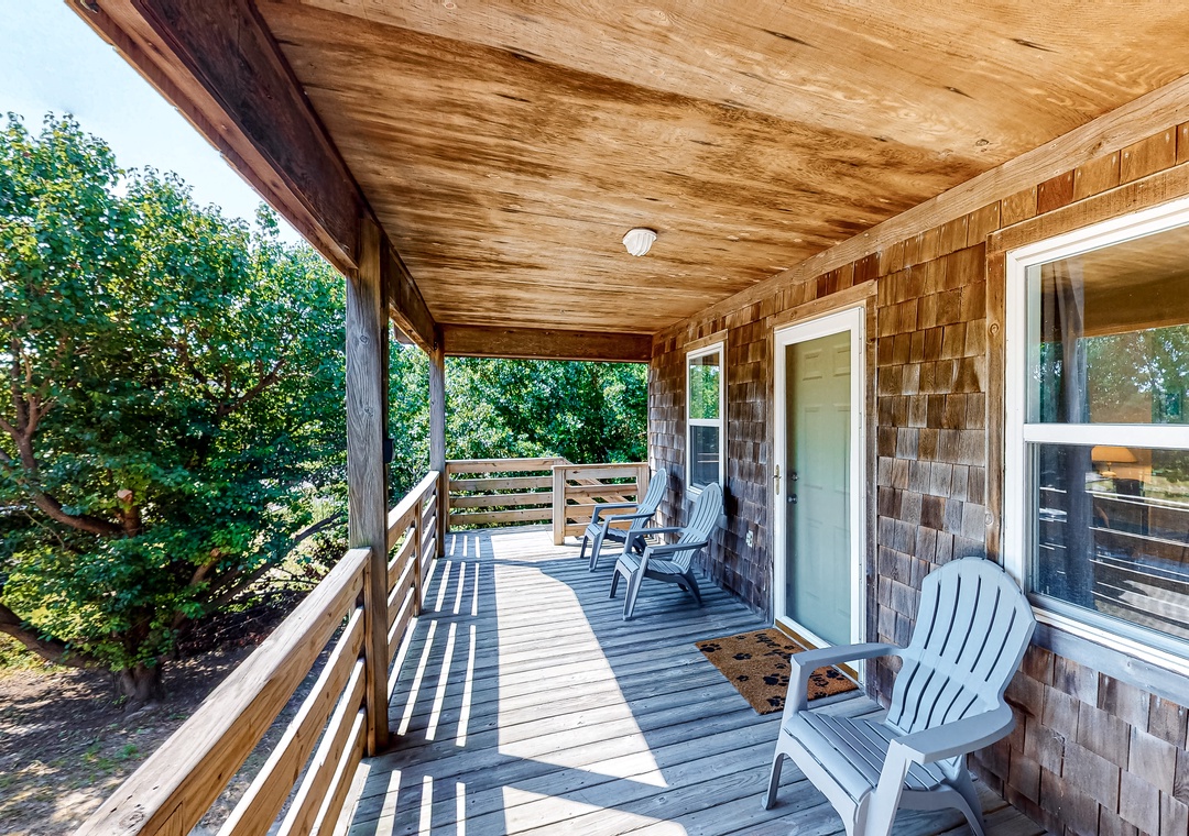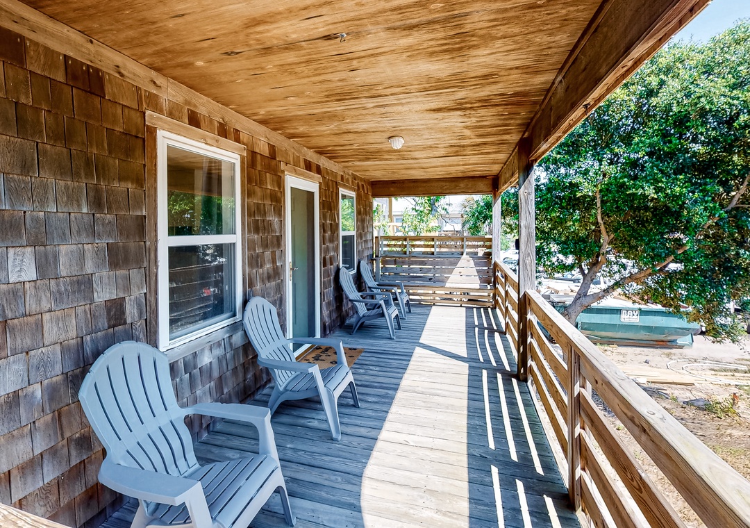 This home is perfect for those looking to rest and unwind, but also would like to experience some outdoor fun. The covered front deck offers a nice place to sit and hang out with plenty of comfortable chairs. More fun awaits at the back patio with a firepit surrounded by a handful of patio chairs and a picnic table for meals al fresco. There's also an outdoor shower to rinse off the sand after spending a day at the beach. The ground-floor covered patio boasts an inviting hammock (perfect for midday naps) and a gas grill.