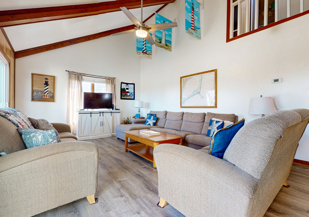 Welcome to your dream getaway in Kill Devil Hills, NC! This spacious house is perfect for large groups and families, offering stunning ocean views from the crow’s nest that will take your breath away. With both front and back decks, you can soak up the sun or enjoy a peaceful evening under the stars. The ground floor game area is a fantastic spot for friendly competitions, featuring a ping-pong table and a variety of board games to keep everyone entertained.