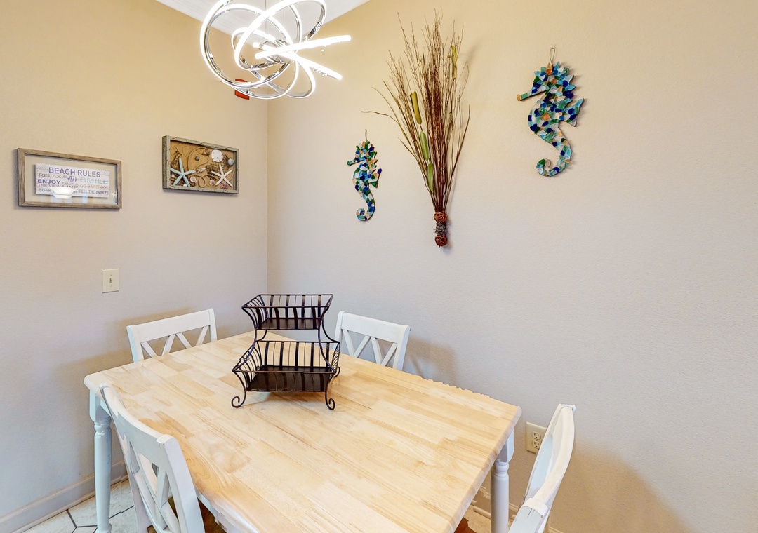 An exceptional stay awaits at this tranquil, second-story condo located within walking distance of the beach! Outside, take in glimpses of the ocean off your furnished deck, while inside, prepare delicious meals in the well-equipped, full kitchen, dine at the breakfast bar or the nearby table for four, and then settle into the living area to stream your favorite channels on the main TV. You and your guests also have access to a shared, seasonal pool (Memorial Day through Labor Day) for when you want to cool off close to home. And when you want to get out and explore, this condo is just a short walk from the beach, a popular beach bar for happy hour, shops, restaurants, and numerous activities.