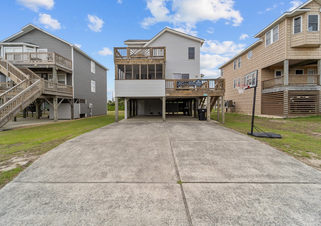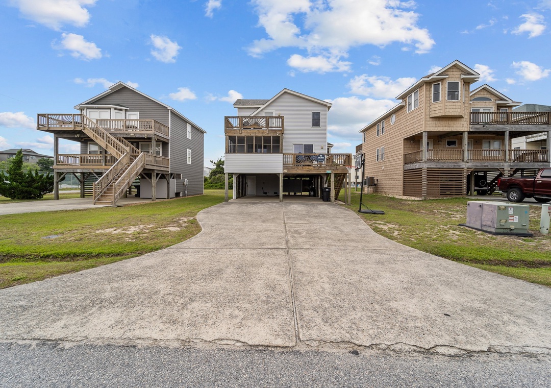 For beach lovers, this property is a dream come true with direct beach access just a 1 1/2 block walk away. The house provides beach essentials such as carts, umbrellas, boogie boards, sand chairs, and toys, ensuring a hassle-free beach day. Additionally, the ground level features convenient amenities like an outdoor shower with hot and cold water, a fish cleaning station, ping pong, a basketball goal, and a gas grill, perfect for outdoor fun and relaxation.