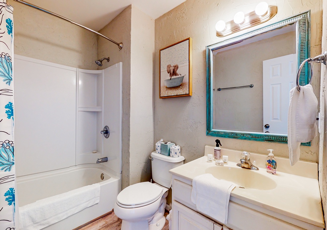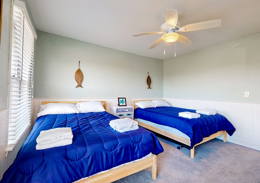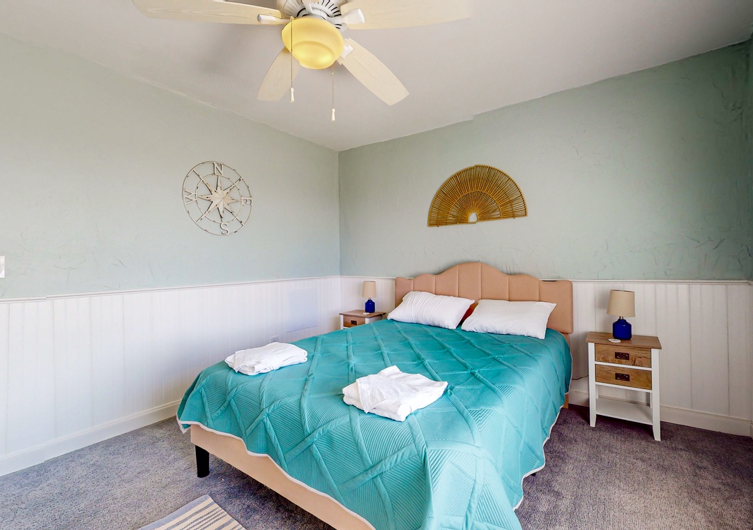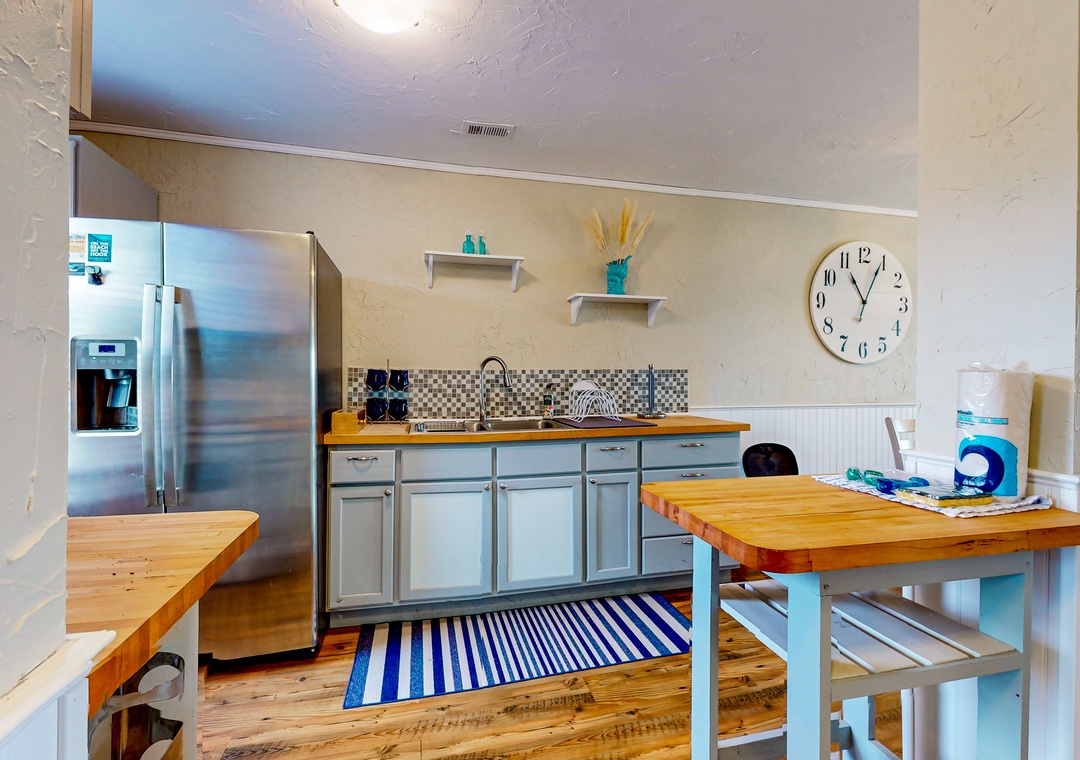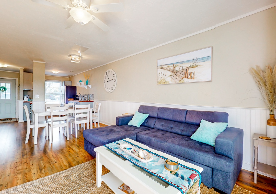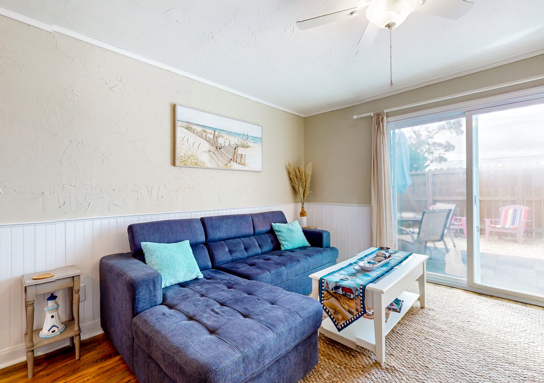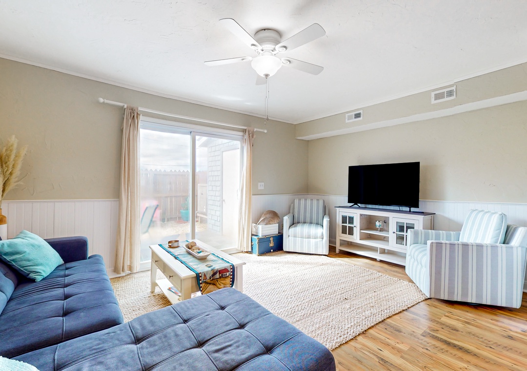 At home, enjoy sunny outdoor living on the private patio or relax inside while streaming shows and movies on the living room smart TV. The full kitchen makes it easy to prepare everything from beach picnics to home-cooked meals. Both bedrooms are located upstairs, separated from the common living area.