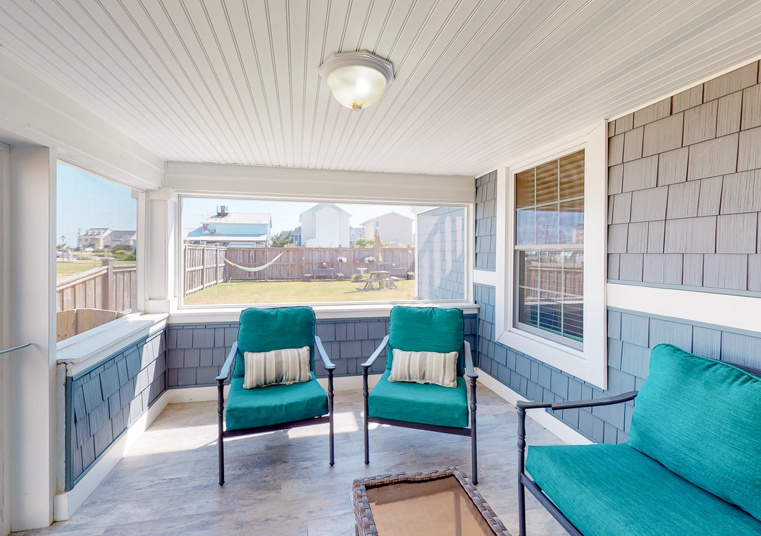 One and a half blocks to public beach access, this beautifully updated vacation rental provides a modern coastal getaway. You’ll love spending breezy evenings on your charming screened porch!