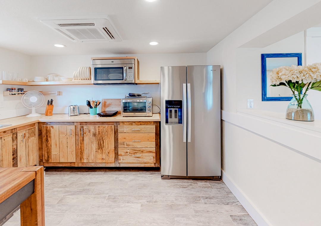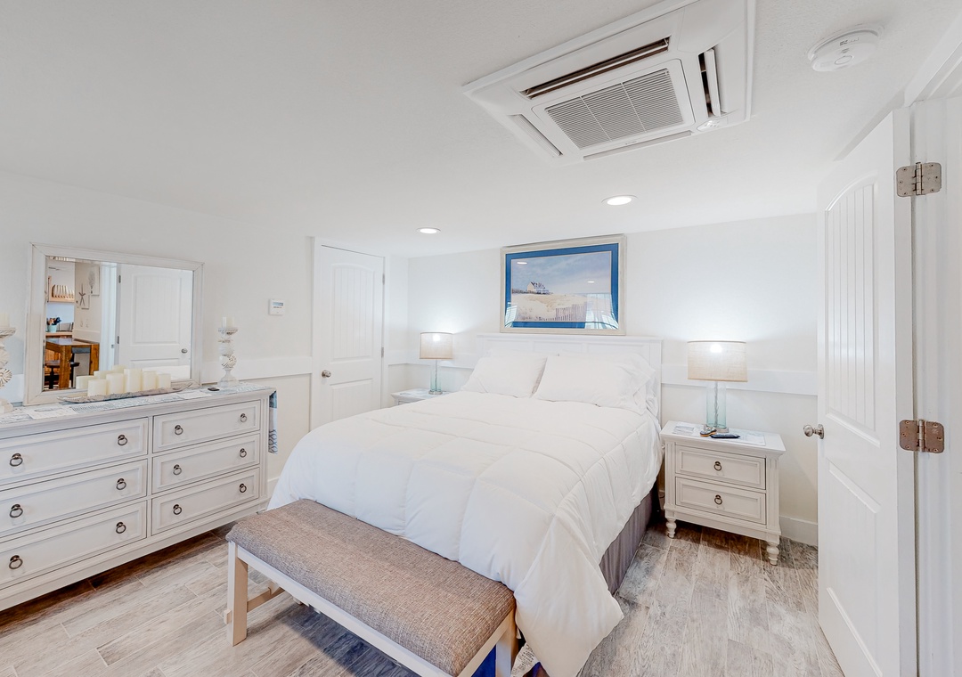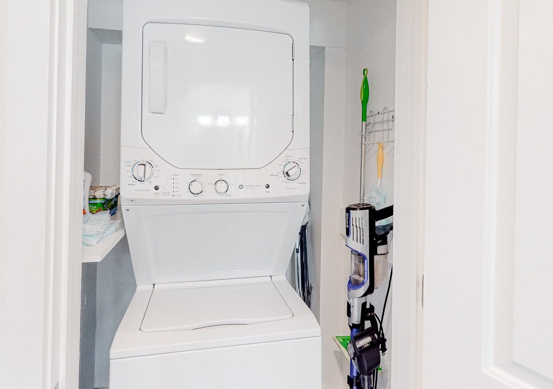 The ductless HVAC system provides powerful cooling and heating. A private washer/dryer, provided beach gear, and a Pack ‘n Play add convenience.