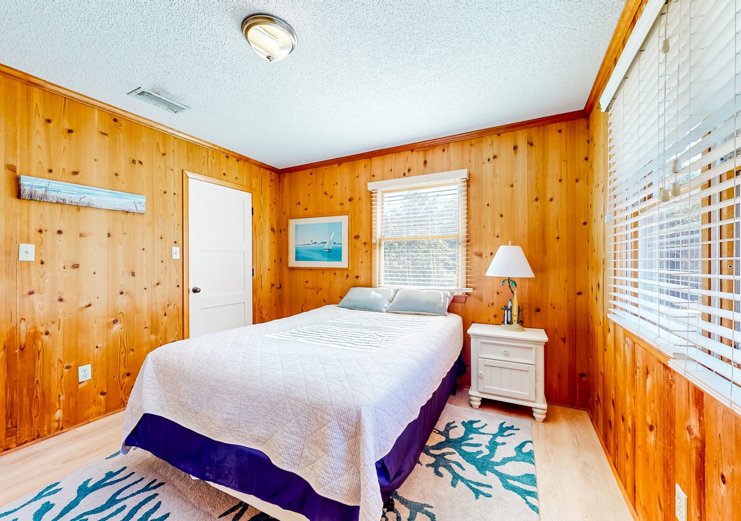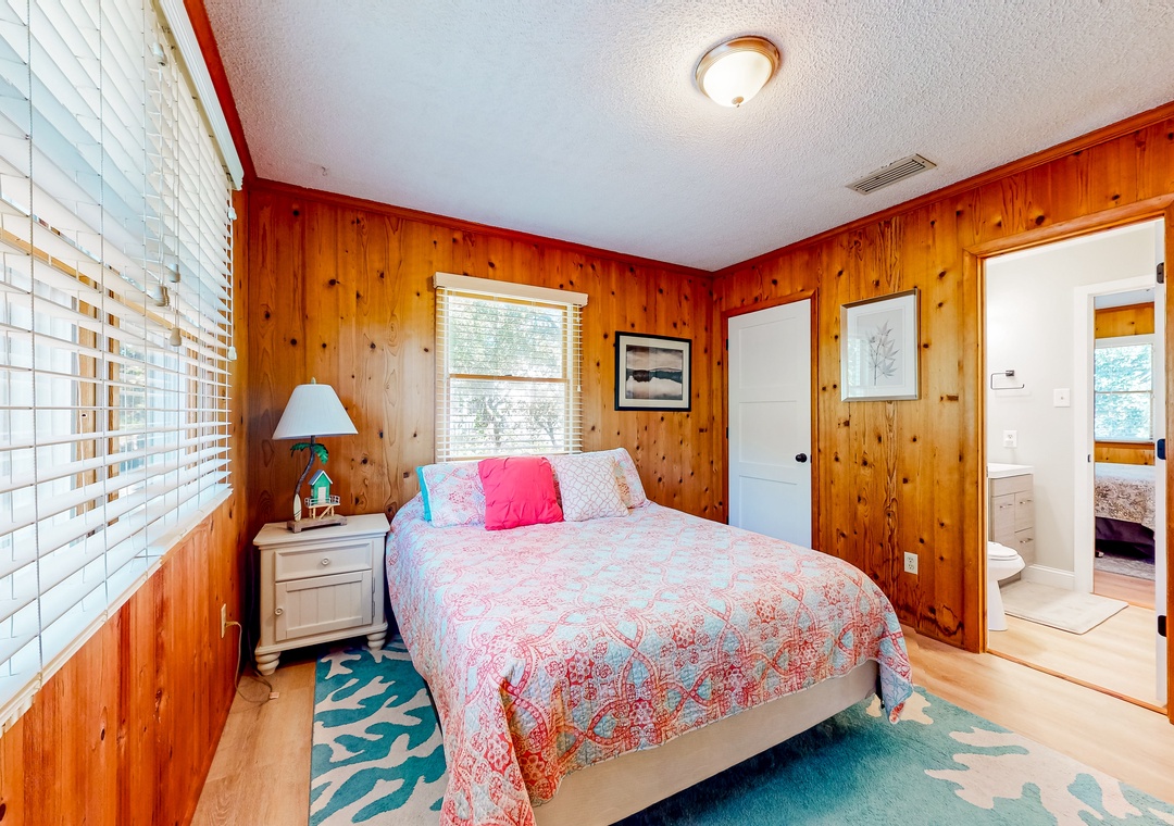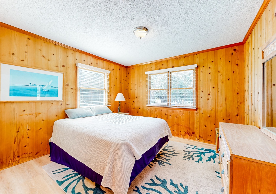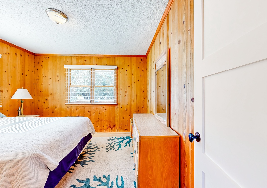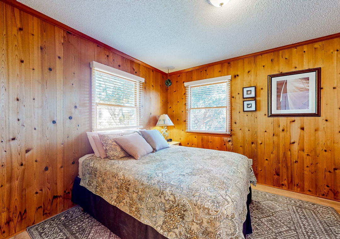 Wood-lined and sizable, the four bedrooms come adorned with soft linens, central air, and tasteful pieces of artwork. Rounding out the interior amenities, appreciate having access to a private washer/dryer and internet.