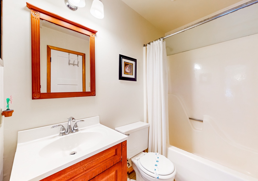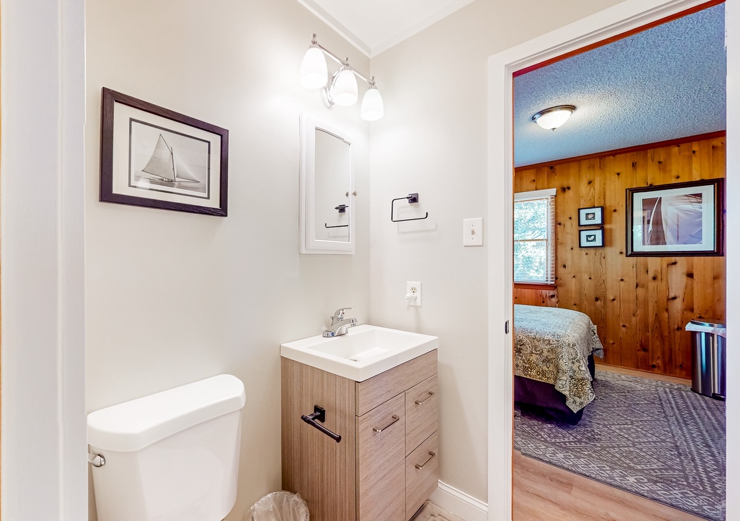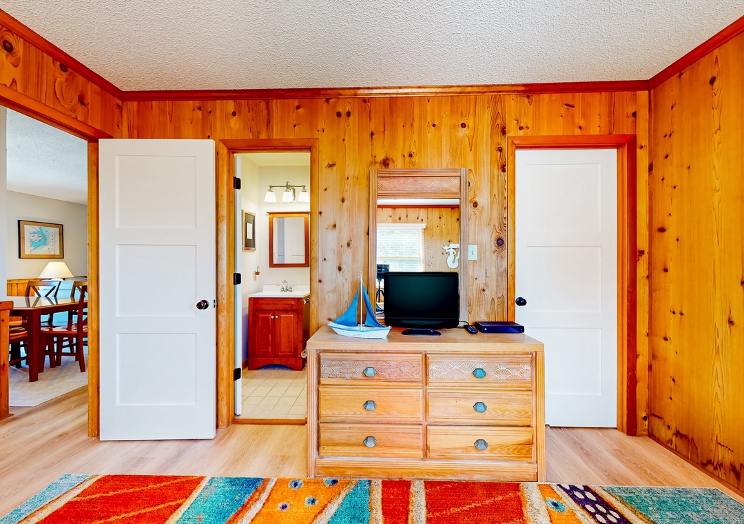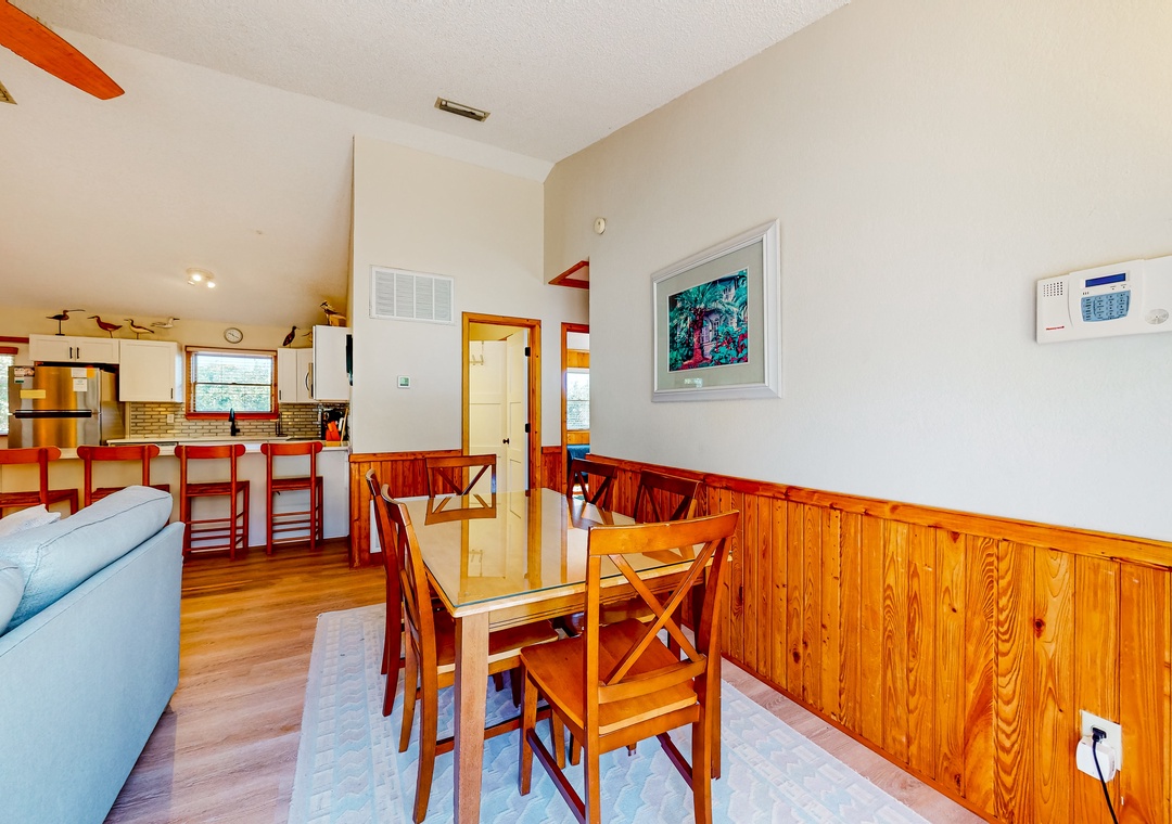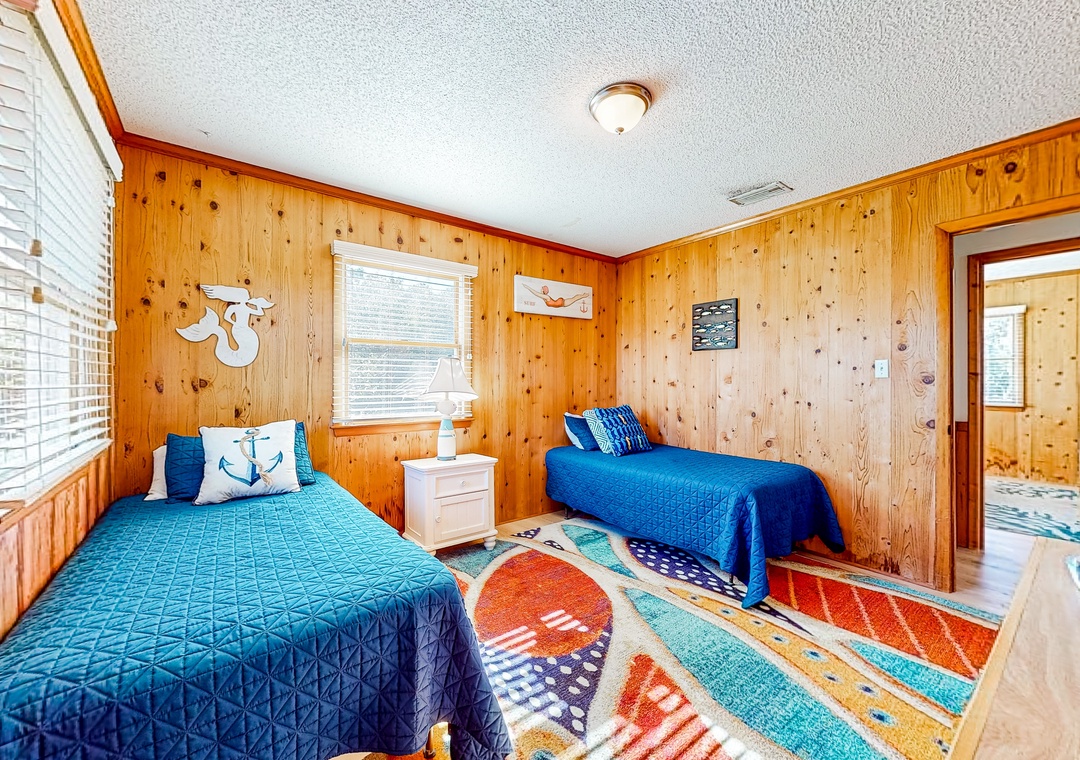Wood-lined and sizable, the four bedrooms come adorned with soft linens, central air, and tasteful pieces of artwork. Rounding out the interior amenities, appreciate having access to a private washer/dryer and internet.