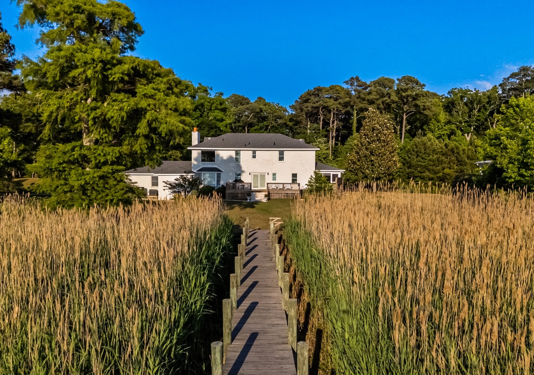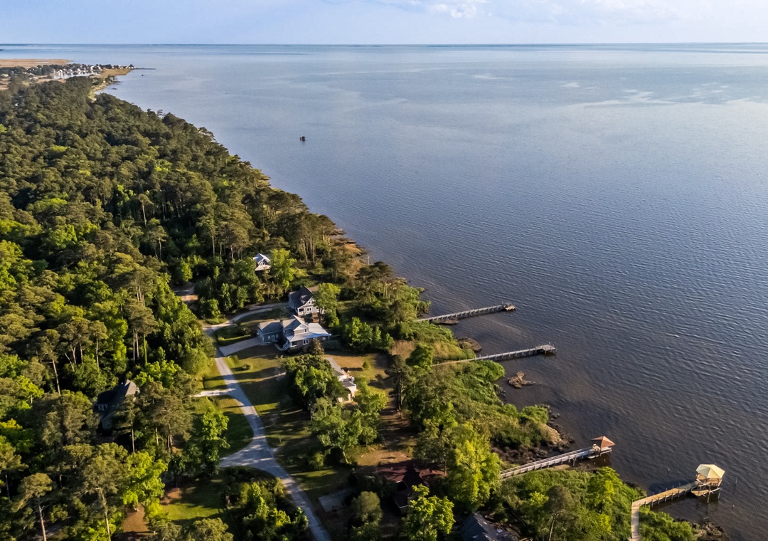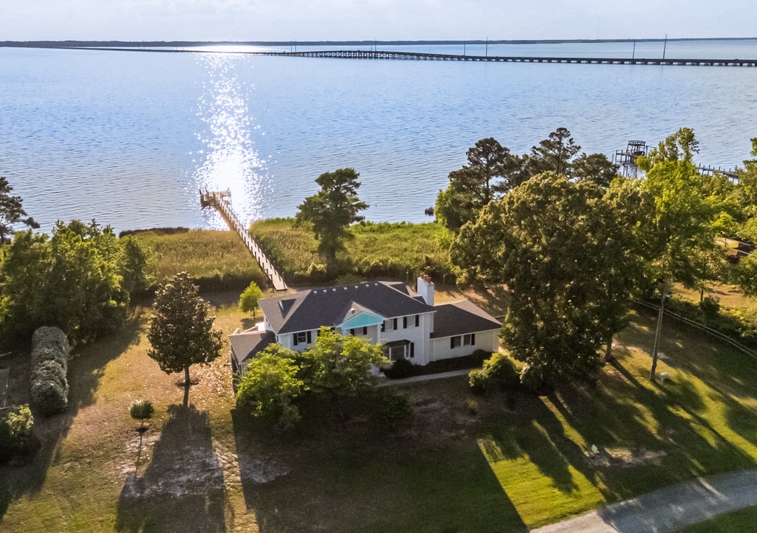 Welcome to your dream retreat in Kitty Hawk, NC, where tranquility meets adventure on over an acre of private waterfront. This classic white brick Colonial home is enveloped by the stunning natural beauty of the Kitty Hawk Reserve, a protected area spanning over 1,250 acres. Just steps from the tranquil waters of the Sound, this property is a true haven for nature lovers and water enthusiasts alike.