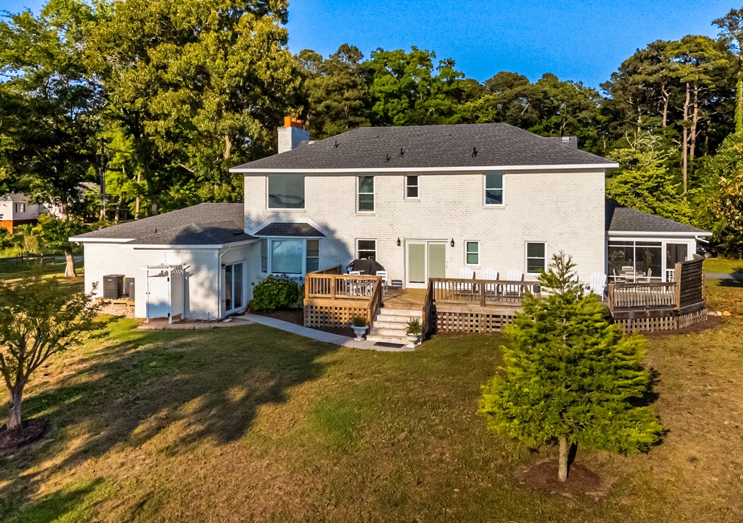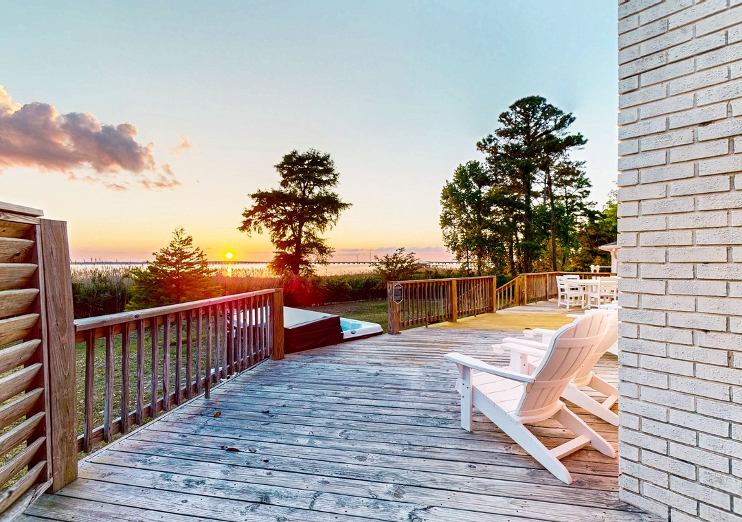 Step outside to unwind on the expansive back deck or indulge in the brand-new 6-seat hot tub, all while basking in the shade of the majestic Magnolia tree. The large screened-in porch beckons for peaceful mornings and cozy evenings, with direct access from one of the waterfront-view bedrooms. As the day comes to a close, prepare to be mesmerized by breathtaking sunset views from the deck, dock, and every room facing the water.