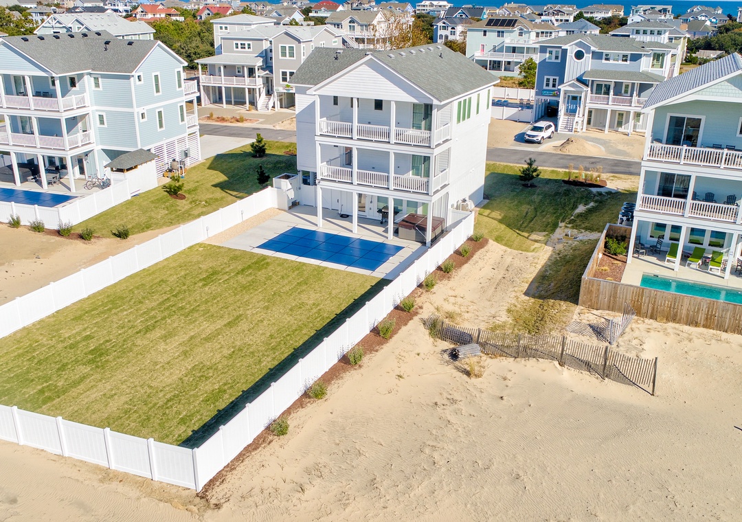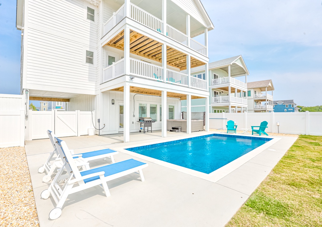 Feel refreshed when staying at this beautiful and modern Corolla home. Located within close proximity to the water, a day full of lovely sightseeing opportunities is effortless. During your stay check out the Currituck Beach Lighthouse, Historic Corolla Park, Wild Horse Adventure Tours, and Corolla Adventure Park - all within five miles of your home. Your utter relaxation and joy are continuous as you'll have access to your very own private backyard and pool, dependent on the season.