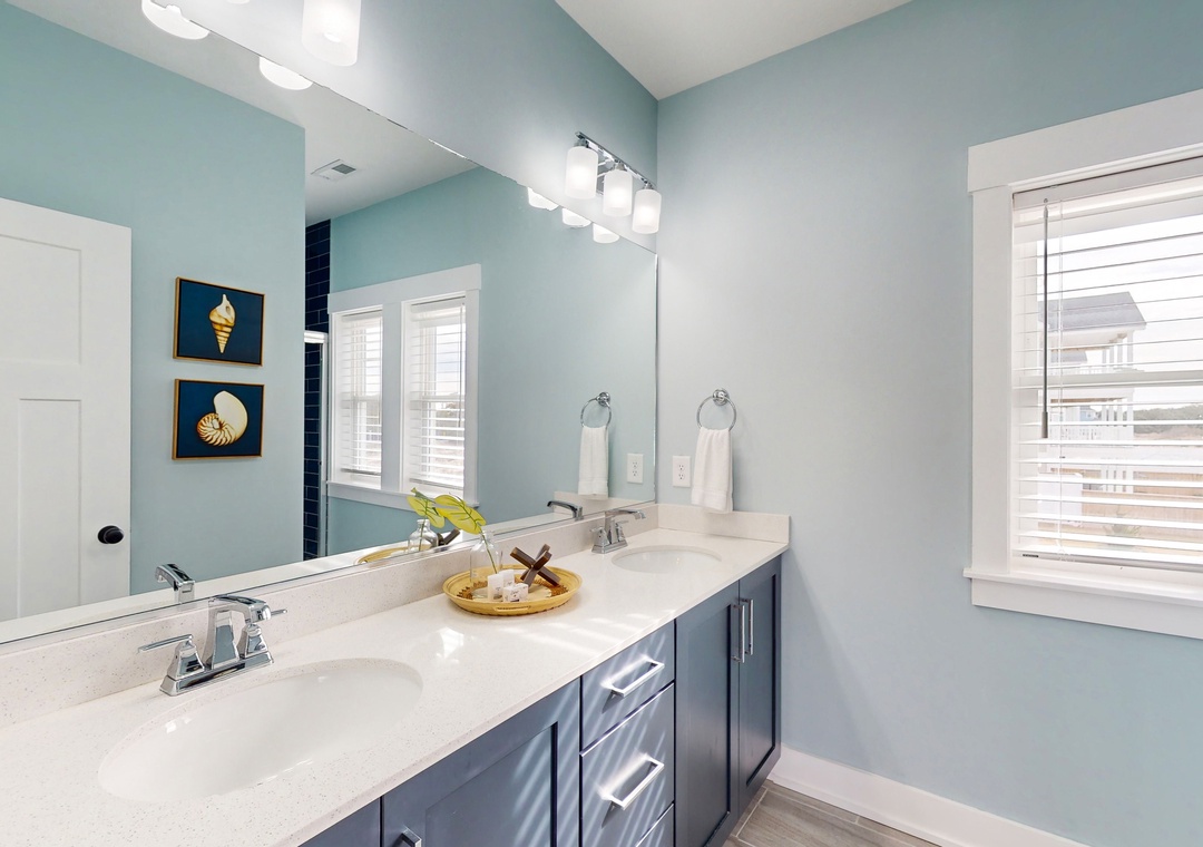 Less than a mile from the beach, this palatial home is brimming with amenities. The gentle waves of the Atlantic shore are incomparable, but this built-in backyard pool comes pretty close. Switch things up by spending some of your days sipping a frozen cocktail on your private pool deck. The fun doesn't need to stop once the sun sets; slip into the outdoor hot tub for a soothing soak.