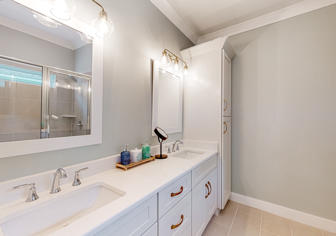 Your rest and relaxation will be found as you slip under the plush linens in the bedrooms and rinse off in the home's walk-in showers. Private TVs in each of the bedrooms ensure that there will be no argument over the remote. A private washer/dryer and central air-conditioning round out the home's interior perks.