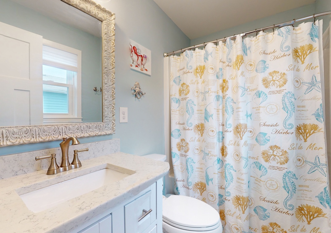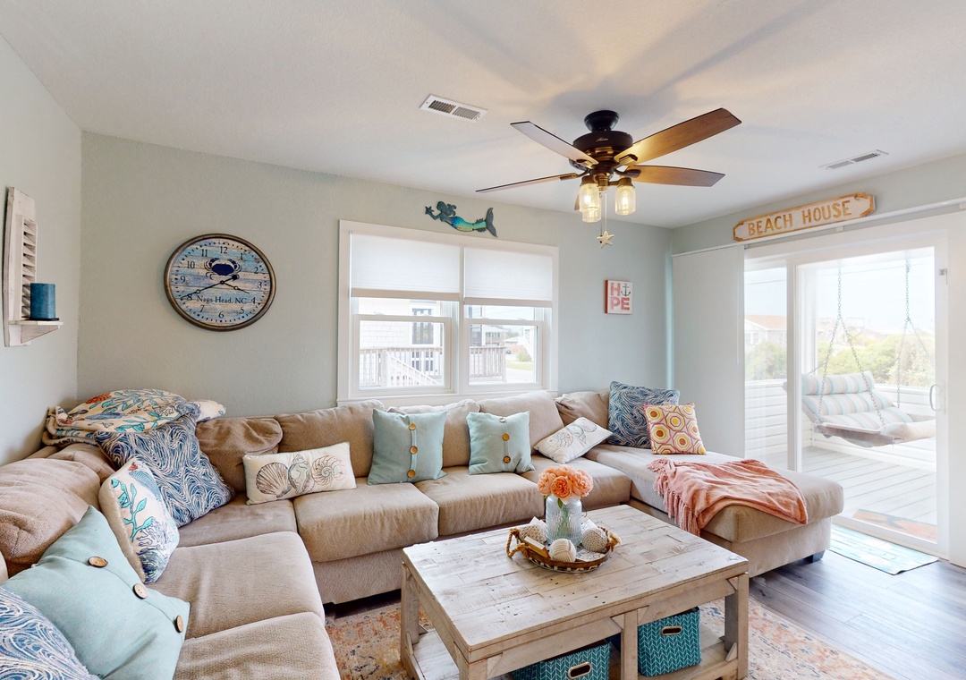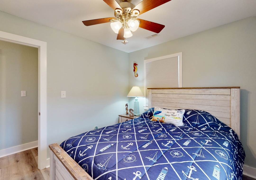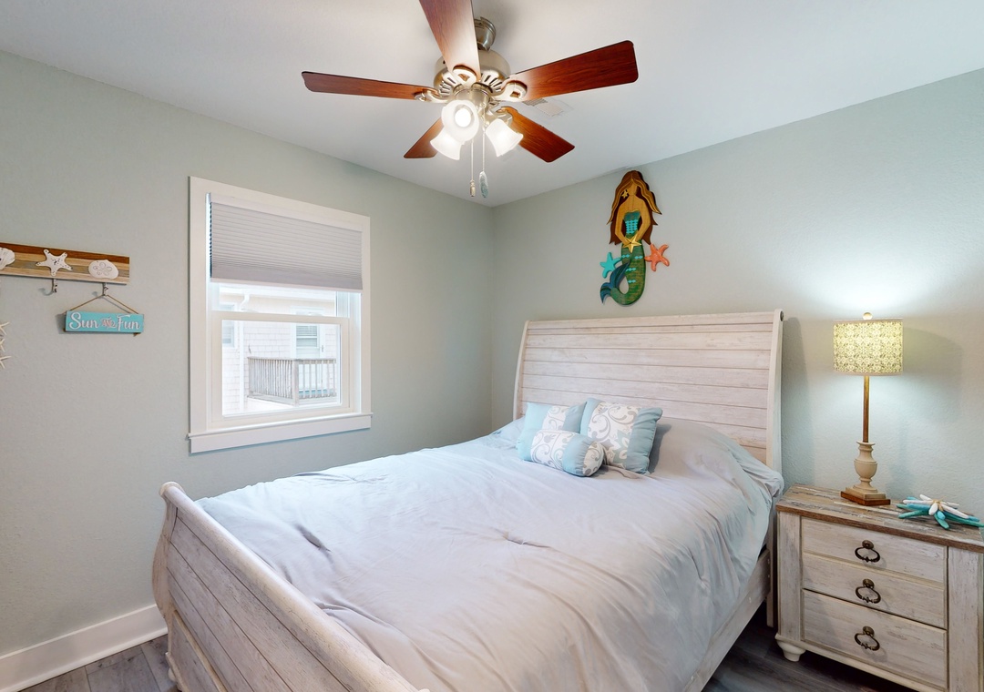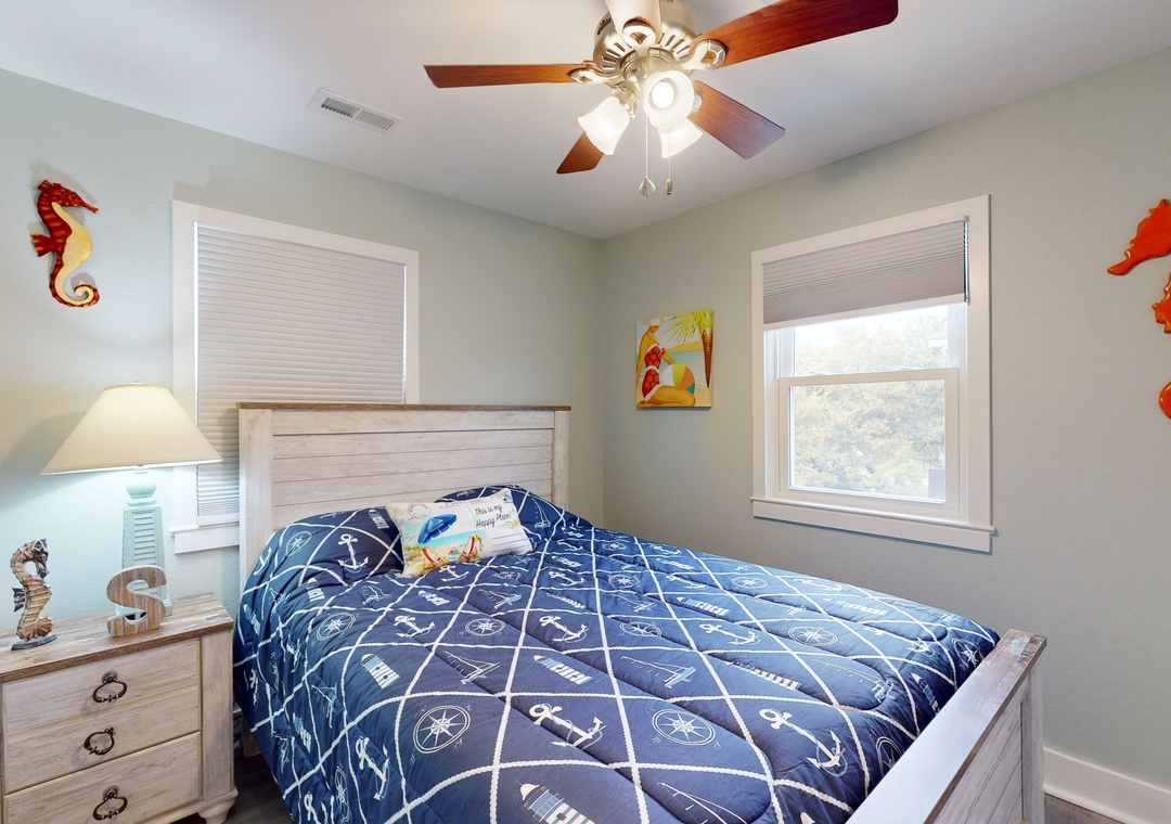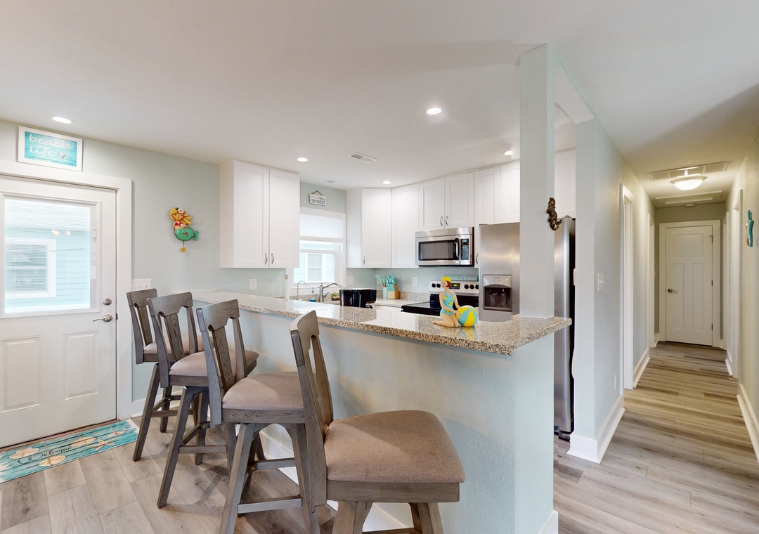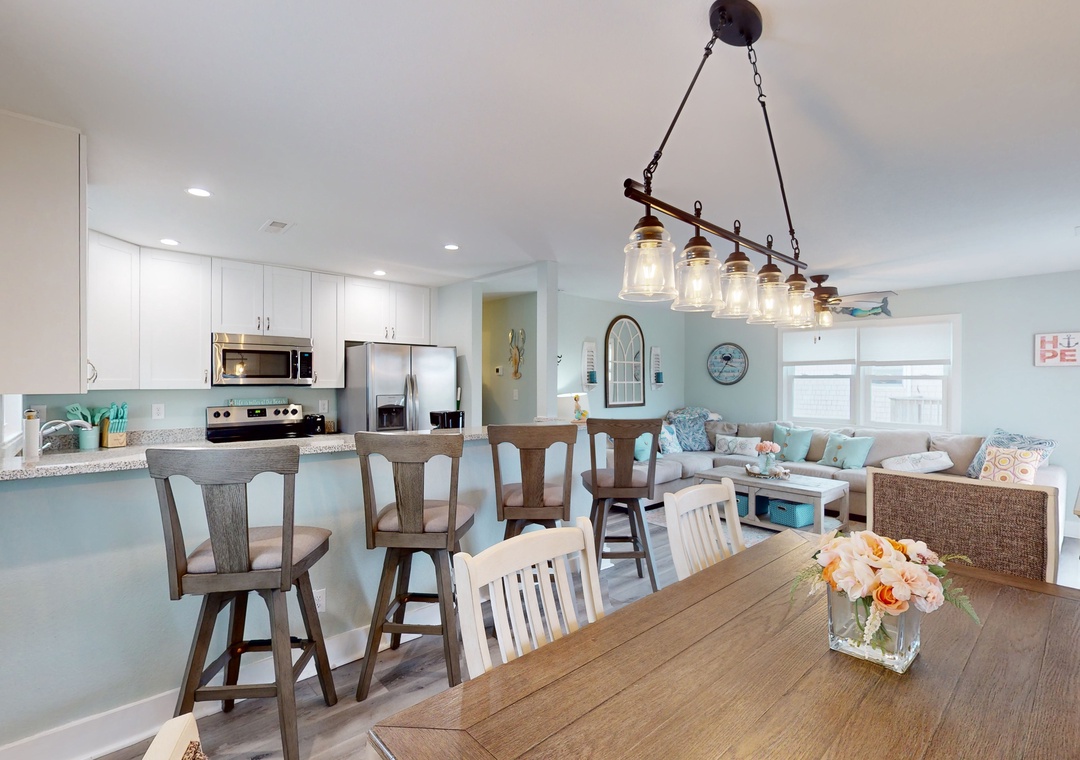 Designed for entertaining, this adorable vacation home features two tiers of outdoor living space and a location within easy walking distance from the beach (0.3 miles to beach access). Spend your mornings sipping coffee on the screened porch, your afternoons splashing in the surf and relaxing on the sand, and your evenings hanging out with crisp beverages on the shaded patio beneath the property.