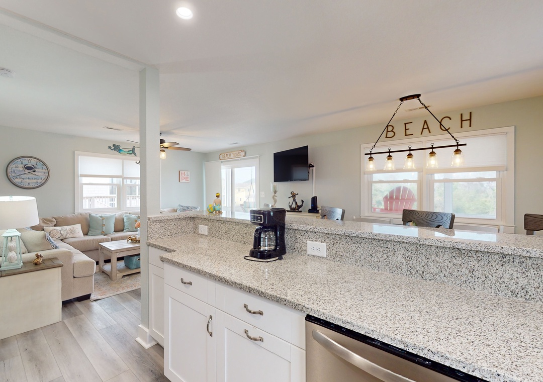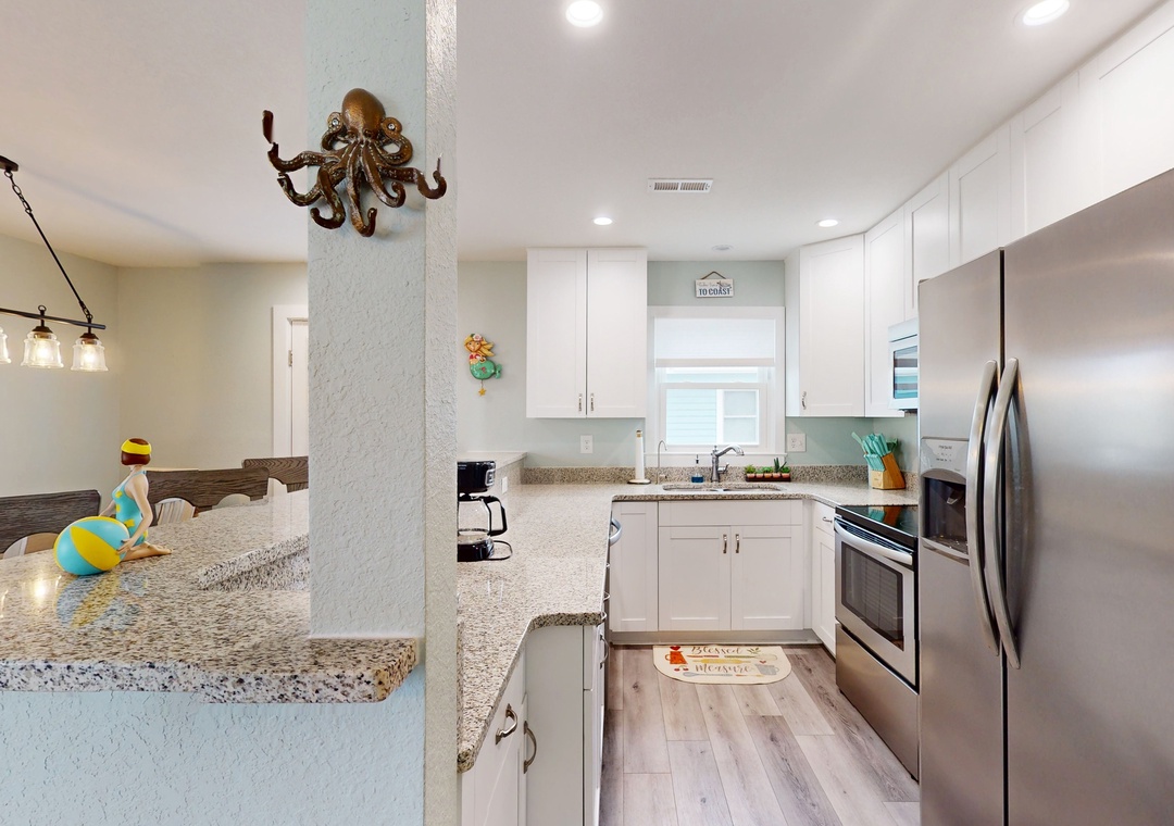 The coastal-themed interior features all the amenities you need for a comfortable stay, including a washer/dryer, central air-conditioning, and WiFi. Whip up a delicious meal in the well-equipped kitchen with a fridge, stove, oven, dishwasher, and microwave. Enjoy movie nights on the TV, and rest easy in comfortable bedrooms with provided linens.