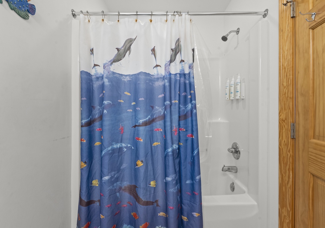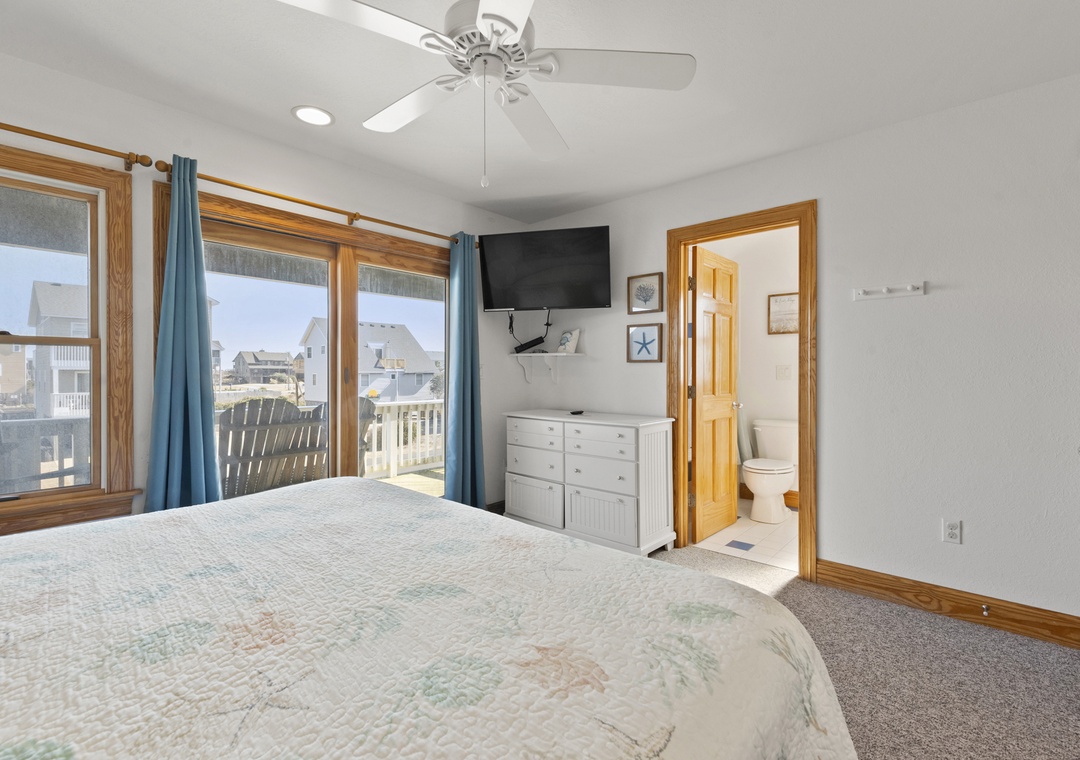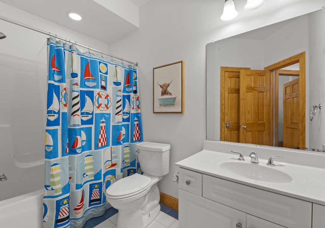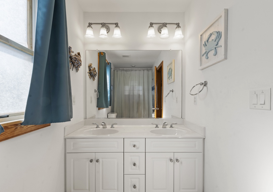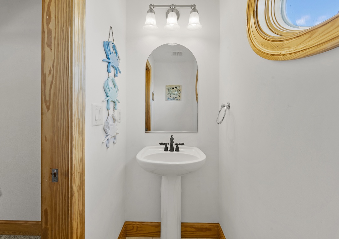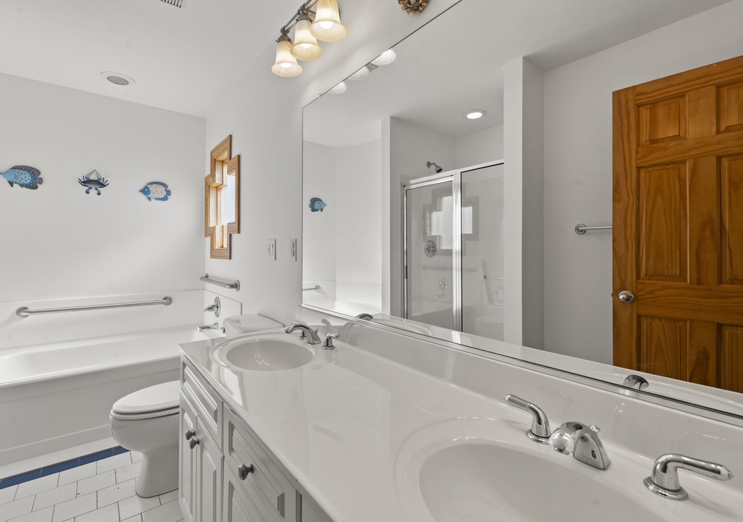 Follow the home's charming nautical-themed mementos into each of the five bedrooms, complete with soft linens, ample natural lighting, private TVs, and effortless bathroom access. Multiple of the home's bathrooms have jetted tubs, ideal for unwinding after a sun-soaked day.