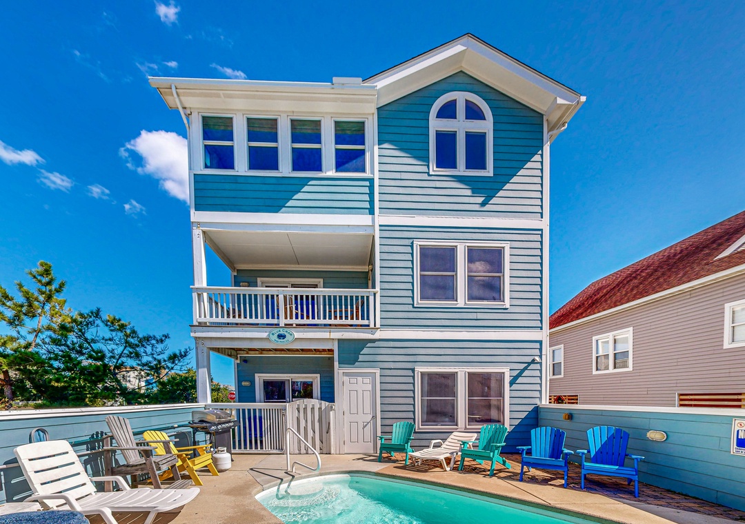 The lower level showcases a pool, hot tub, and gas grill. When you aren't hanging out here, sit back and sip on one of the spacious balconies equipped with Adirondack chairs.