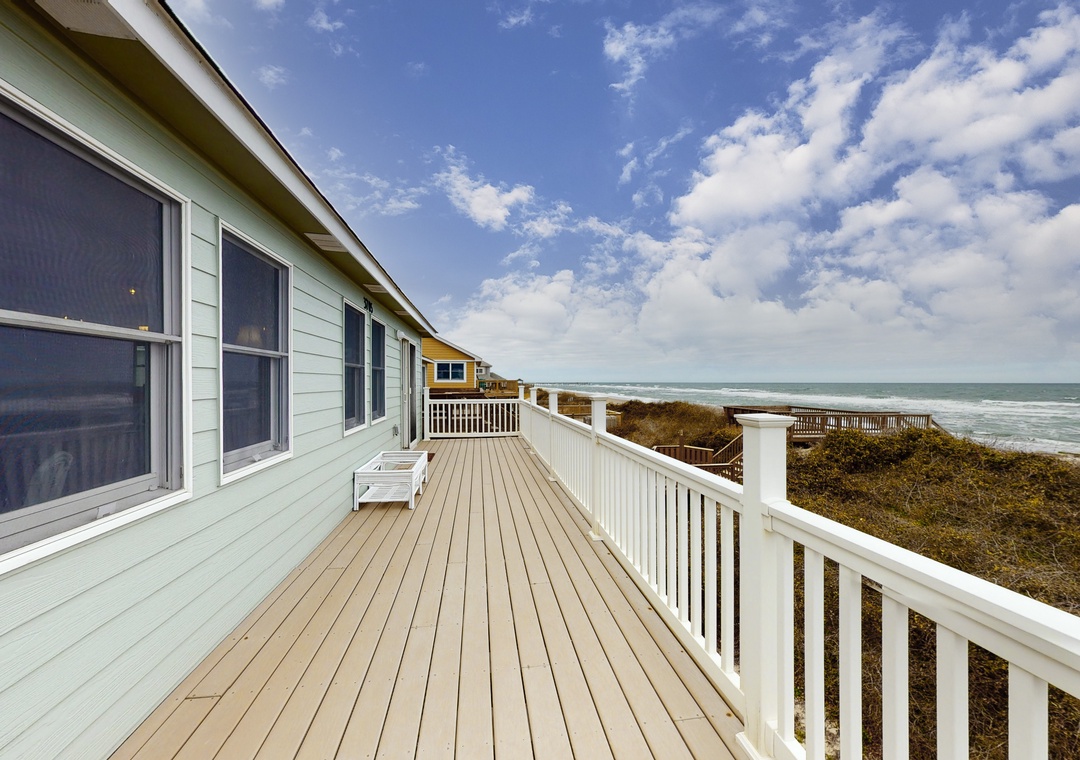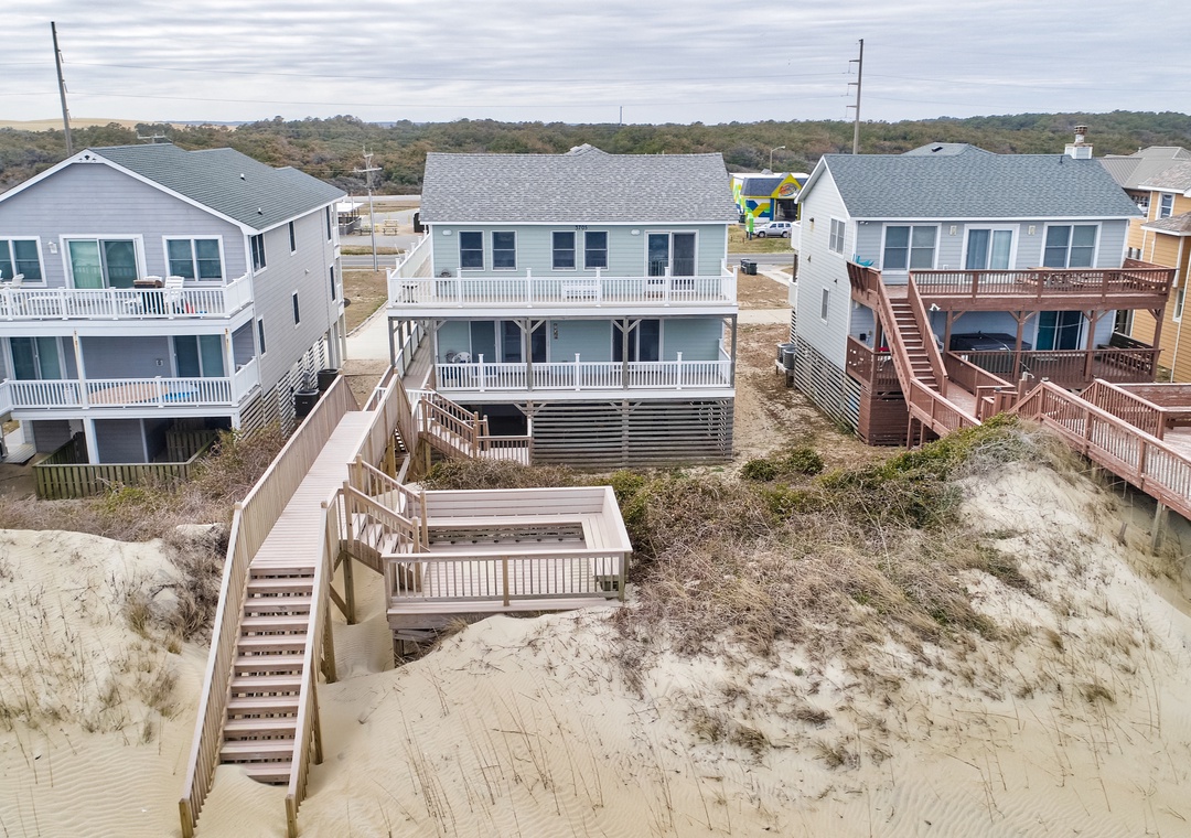 A dreamy oceanfront escape awaits when you chose this gorgeous home as your launchpad for your next beach vacation. You will be located right in front of the beach and Jockey's Ridge State Park is less than a mile away! Spanning three floors, this spacious getaway features amazing ocean and beach views from the wraparound deck, unbeatable water access, and plenty of room to both relax and entertain. The open living space offers a huge sectional with a smart TV for movie nights, while the sparkling kitchen has all you need to create your favorite recipes. Dine together at the ocean-view table or kitchen bar.