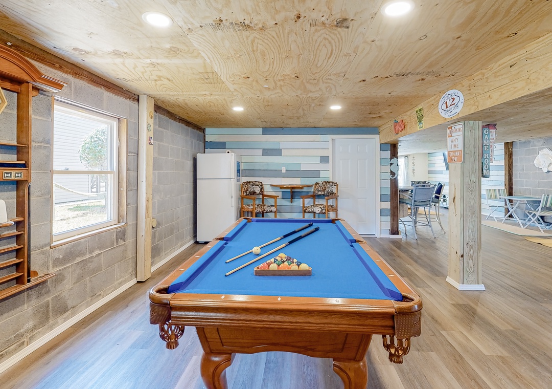 Inside, you'll find just as many charming areas to gather. With heart pine floors, coastal blue decor, and lots of natural light, the main level features the combined kitchen, dining, and living space. The chef will find a full suite of appliances, lots of cabinetry, and plenty of countertop space for making mealtime magic. Relax in the living room while you stream the latest release or upload the day's pics to social media. More entertainment options await in the game room downstairs, which also features an extra fridge for snack storage. You'll find lots of board games, a pool table, bar-top tables, another streaming-capable TV. . At the end of a fun day, comfortable bedrooms await on the main floor - each with a streaming-capable TV. With so much to do both at home and nearby, the only question left is how many extra days you'll book at No Bad Dayz