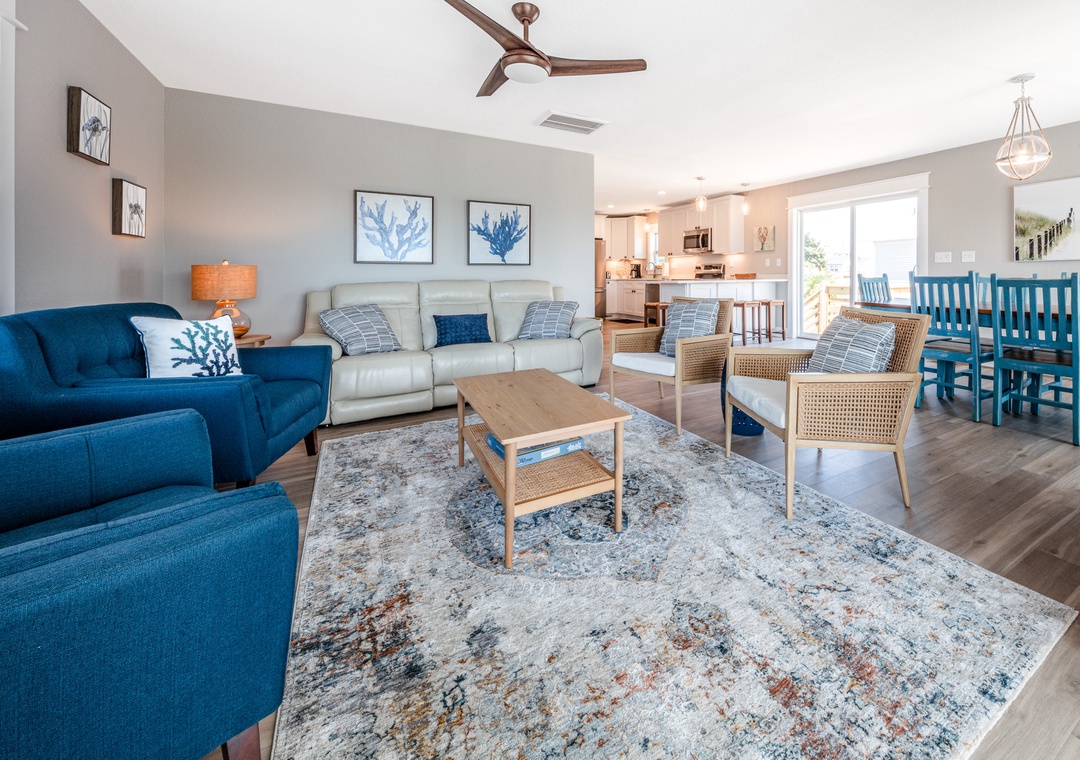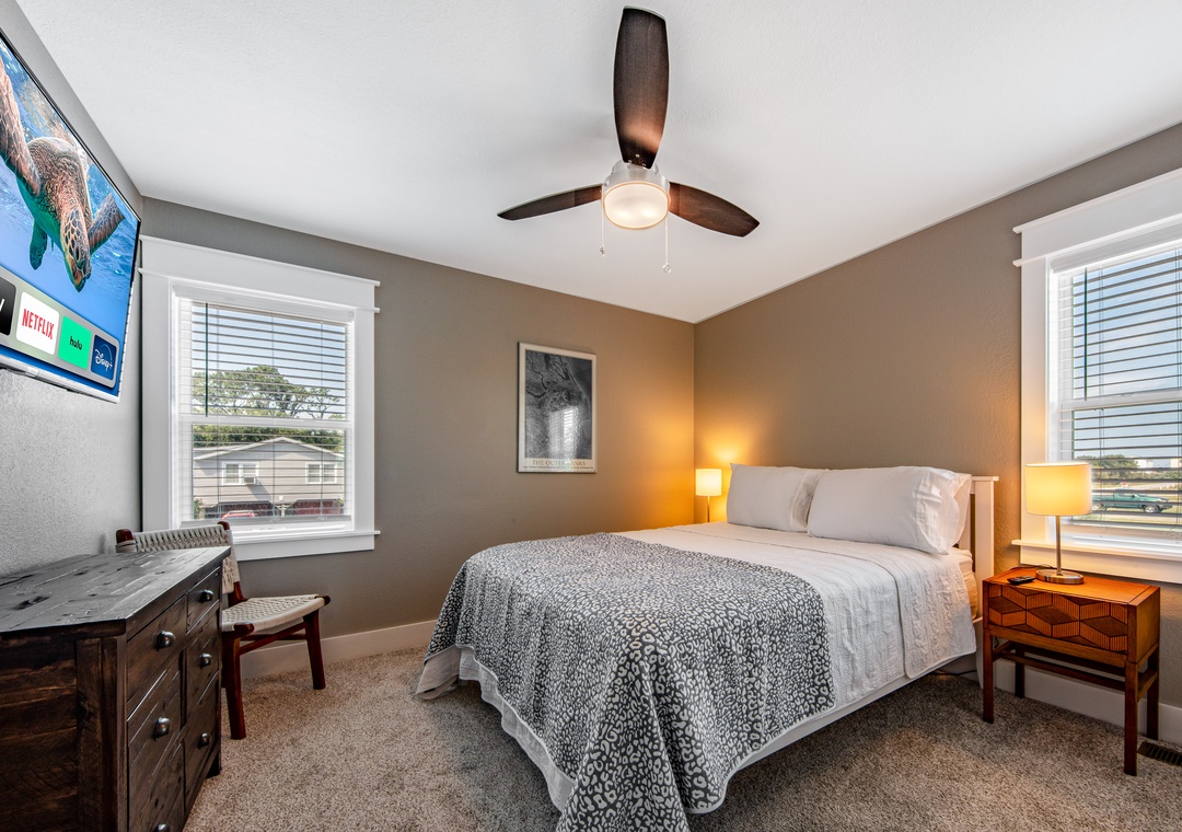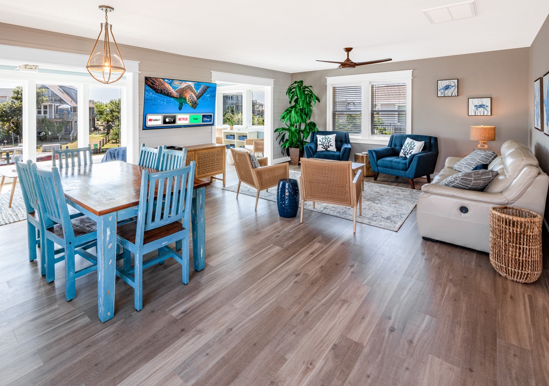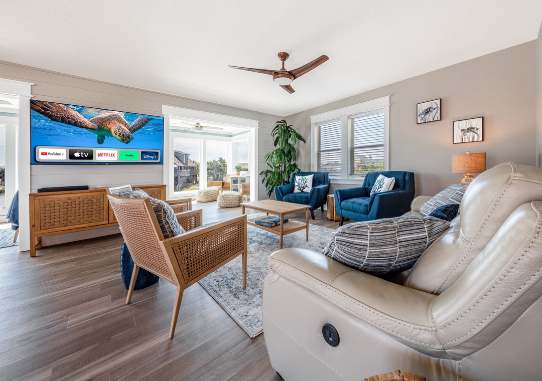 Anchor down for a while here at Island Trader and make lasting vacation memories. Expansive water views will surely delight and keep you returning to this waterfront gem year after year. Island Trader has been fully remodeled creating spacious open living with water views from the majority of the home. The modern, elegantly furnished interior will soothe your soul with a coastal theme and bright accents. A fully equipped kitchen is equipped with the chef in mind, so be sure to bring along your favorite recipes. The large sunroom overlooks your dock, two canals, and has Roanoke sound views where you can unplug and read a book. Catch a movie on the 65-inch Smart TV as you relax in the large living room on the leather reclining sofa or oversized chairs. High-speed internet allows you to enjoy all of your favorite streaming options. Unwind and get a restful night's sleep in any of the three bedrooms with smart TVs. The large en-suite has a king bed, walk-in custom tile shower, and double vanity. The remaining two rooms offer queen beds and share a bath with a soaking tub finished with a tile surround. The laundry room is convenient for all.