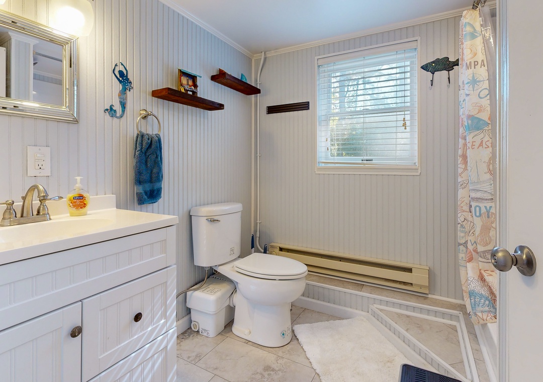As you arrive at this charming vacation rental, you'll immediately feel a sense of tranquility. The private yard, adorned with azaleas and dogwood trees, offers a peaceful retreat with cozy front porch rocking chairs, an outdoor firepit, and a nostalgic single swing. After a day at the beach (just 7/10th of a mile away), rinse off in the newly installed outdoor shower or unwind in the hot tub under the starry Outer Banks sky.