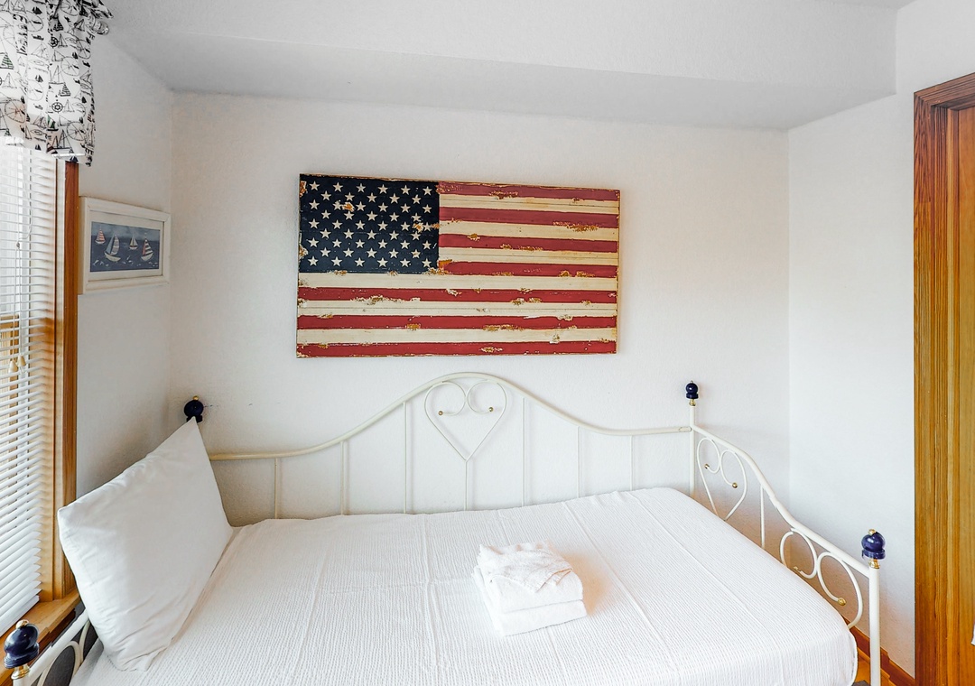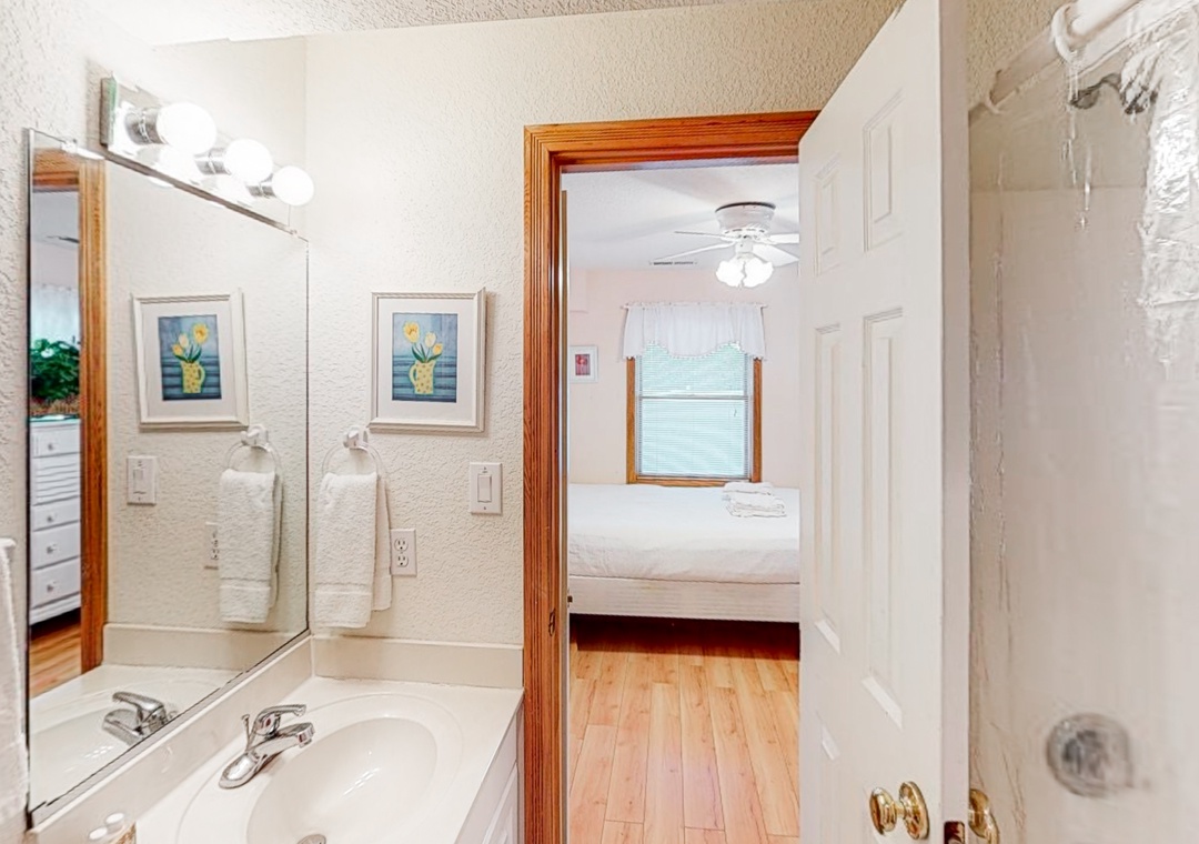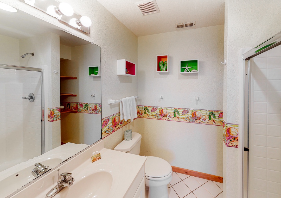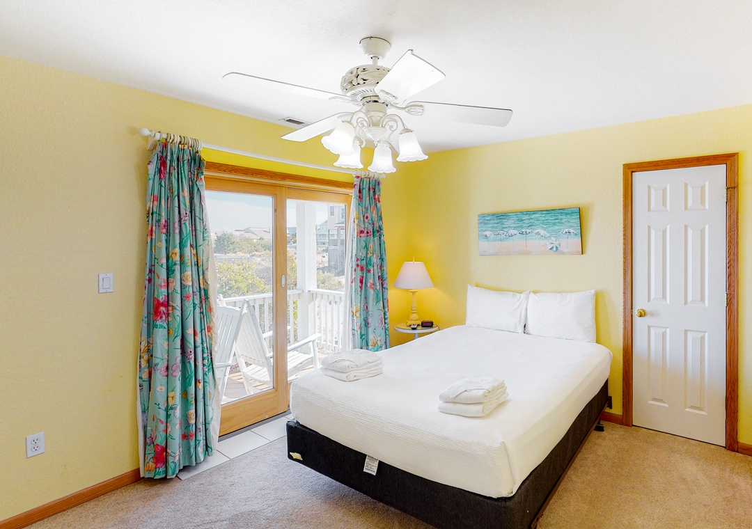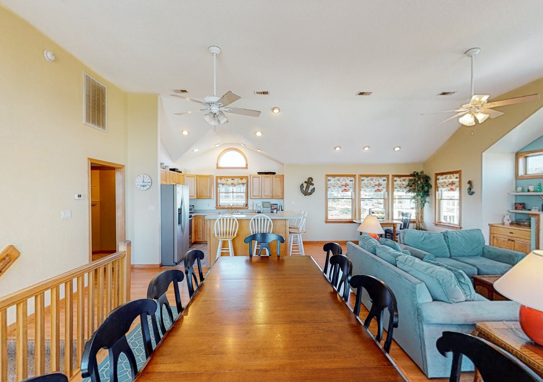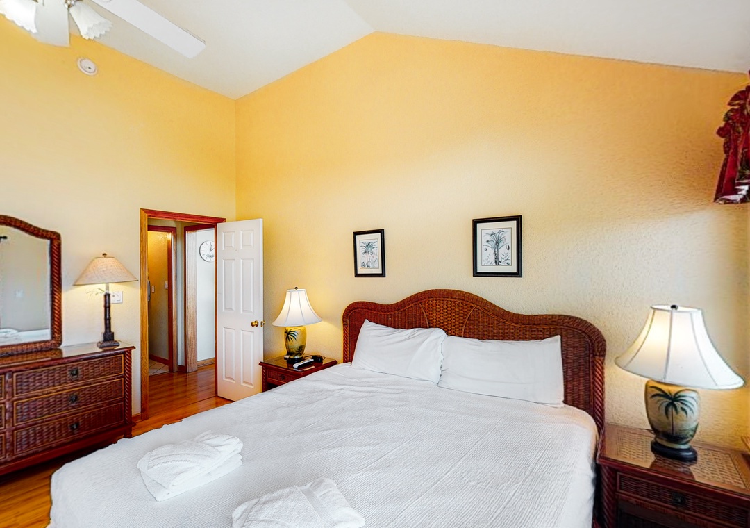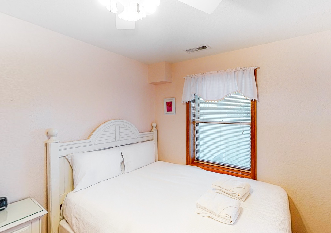 Mid Level: Has 2 Queen main bedrooms and a Queen room, all with TVs; a private den with Daybed with Trundle and a 32 in. TV; a room with Duobunk with Trundle, and a full bath.
